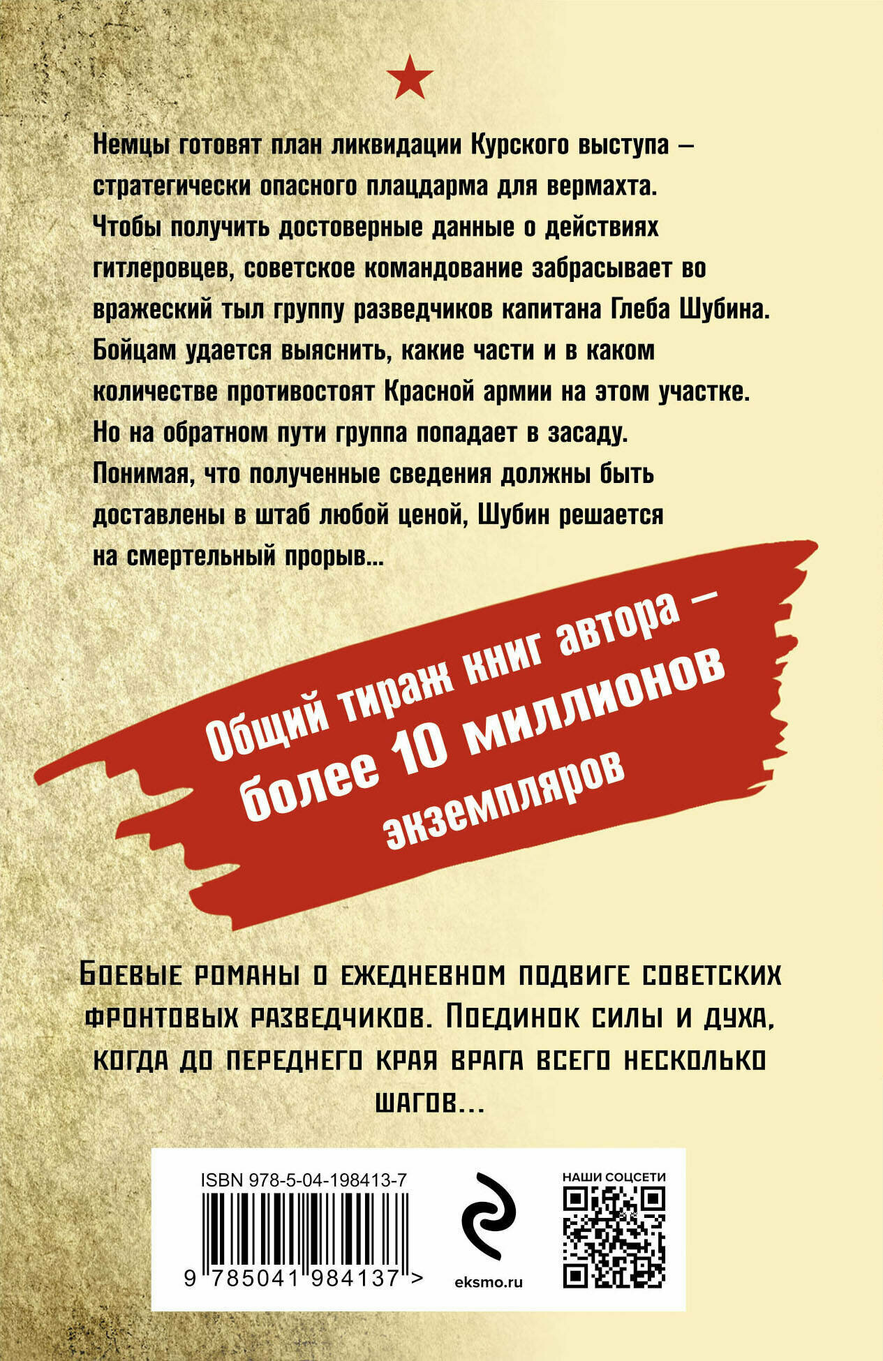 Немцы готовят план ликвидации Курского выступа — стратегически опасного плацдарма для вермахта. Чтобы получить достоверные данные о действиях гитлеровцев, советское командование забрасывает во вражеский тыл группу разведчиков капитана Глеба Шубина. Бойцам удается выяснить, какие части и в каком количестве противостоят Красной Армии на этом участке. Но на обратном пути группа попадает в засаду. Понимая, что полученные сведения должны быть доставлены в штаб любой ценой, Шубин решается на смертельный прорыв…