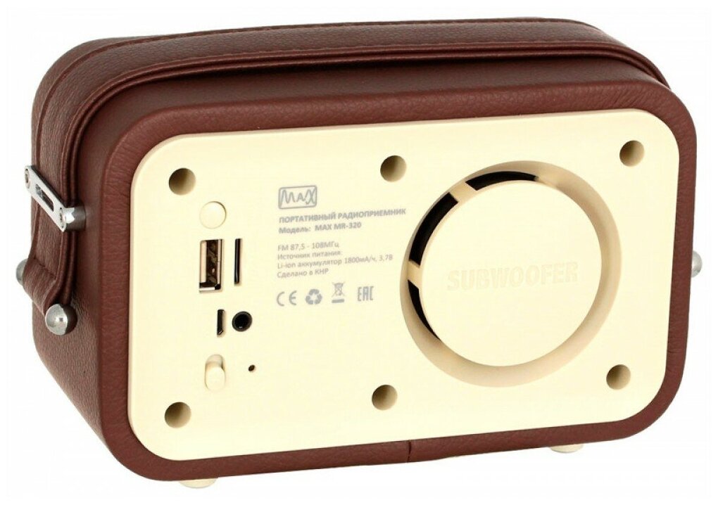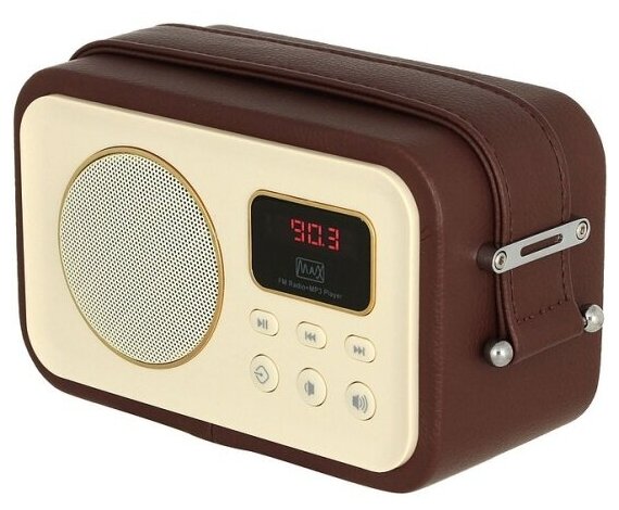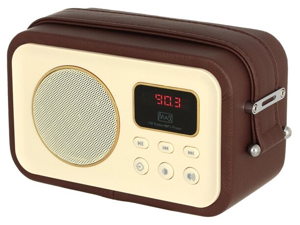 MAX МR-320, переносной радиоприемник с цифровым радио тюнером FM. Древесный корпус покрыт высококачественной экокожей.