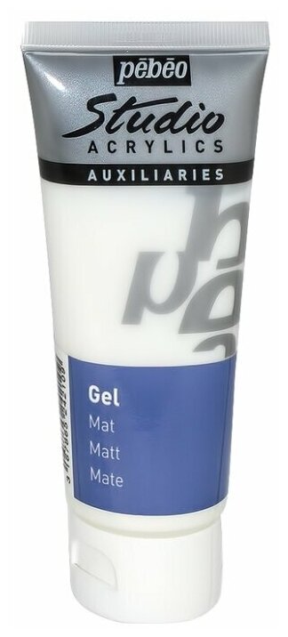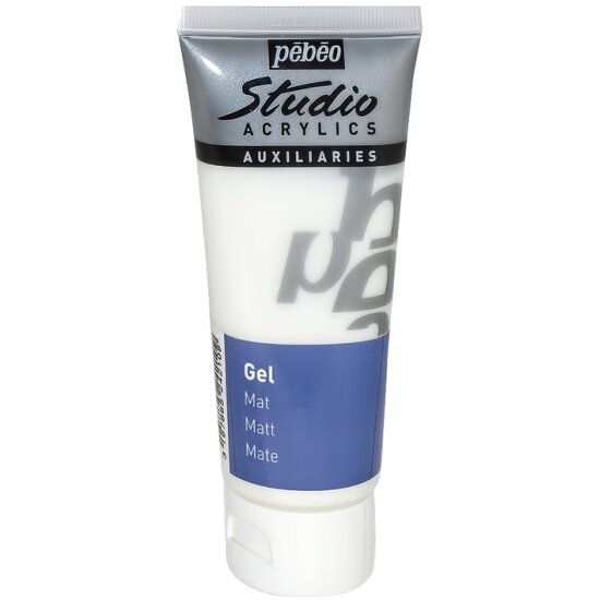 Гель акриловый Pebeo Studio. Имеет консистенцию, идентичную акриловым краскам Studio. Добавляется к краскам для усиления прозрачности и глубины цвета без изменения их текстуры. Придает матовость поверхности. Позволяет создавать коллажи и различные объёмные конструкции. Объем: 100 мл.