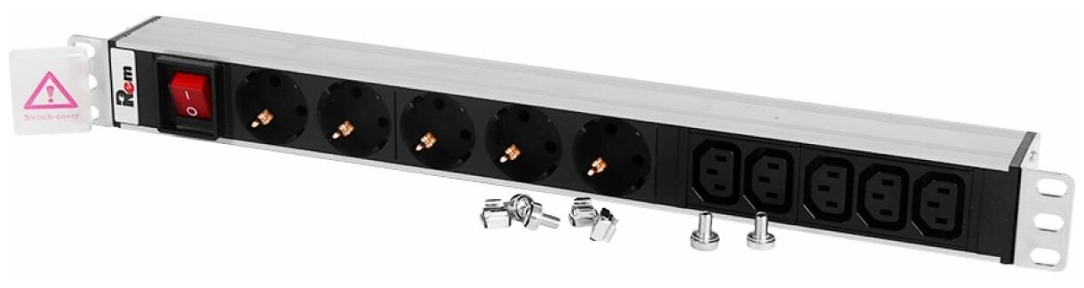 блок силовых розеток Rem-10 19" Shuko IEC 60320 C13 х 10 вход IEC 320 C14 1U10А выключатель без шнура ЦМО R-10-5S-5C13-V-440-Z