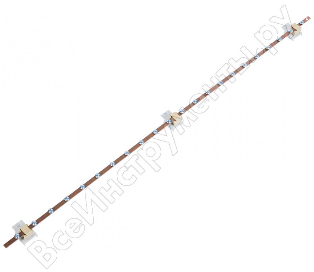 Представляет собой латунную шину сечением 5х15мм соединенную с монтажными кронштейнами диэлектрическими держателями.