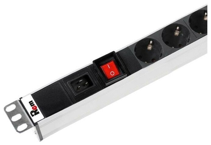 Блок силовых розеток имеет семь портов стандарта Schuko, выполнен в анодированном алюминиевом корпусе. Розетки расположены горизонтально, для удобного подсоединения коленчатых штекеров. На лицевой части блока установлен выключатель. Вход кабеля питания - IEC 60320 C20. Кабель питания в комплект поставки не входит. Совместим со всеми линейками 19 монтажного оборудования. Поставляется в индивидуальной упаковке с комплектом крепежа. Выполнен в системе несущих конструкций 482,6 мм по ГОСТ 28601.2 (19-дюймовые конструктивы по МЭК 297).