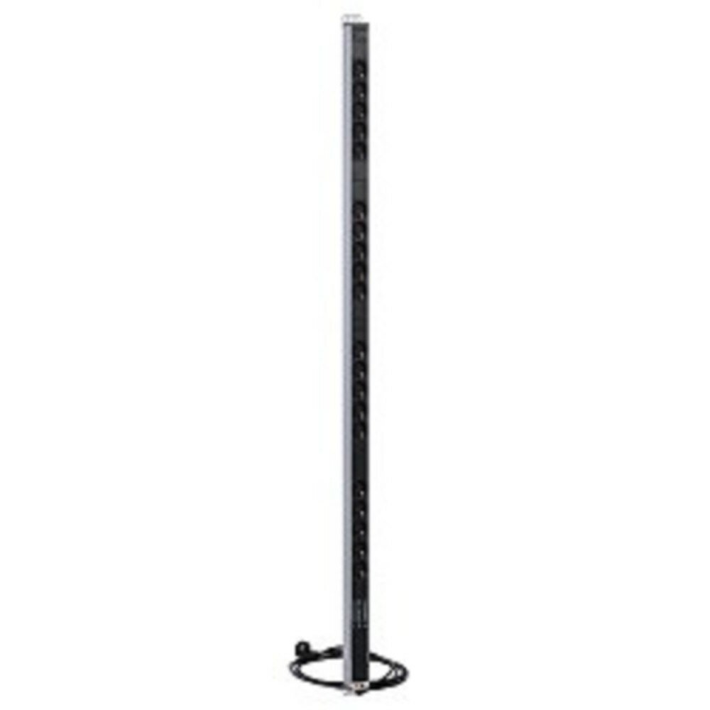 | Прочие особенности и свойства | Блок силовых розеток имеет двадцать портов Schuko, выполнен в анодированном алюминиевом корпусе. Розетки расположены под углом 45%, для удобного подсоединения коленчатых штекеров. Блок имеет фильтр защиты с индикатором питания. Кабель питания 3 метра. Блок предназначен для установки в шкафы 33-48U. Поставляется в индивидуальной упаковке с комплектом крепежа. |