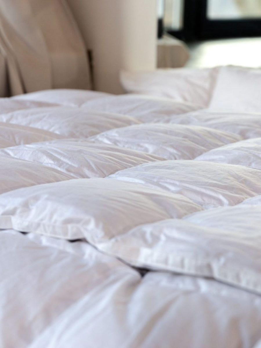 Одеяло с буфами «Бьянко» из белого гусиного пуха в белом тике (100% хлопок).