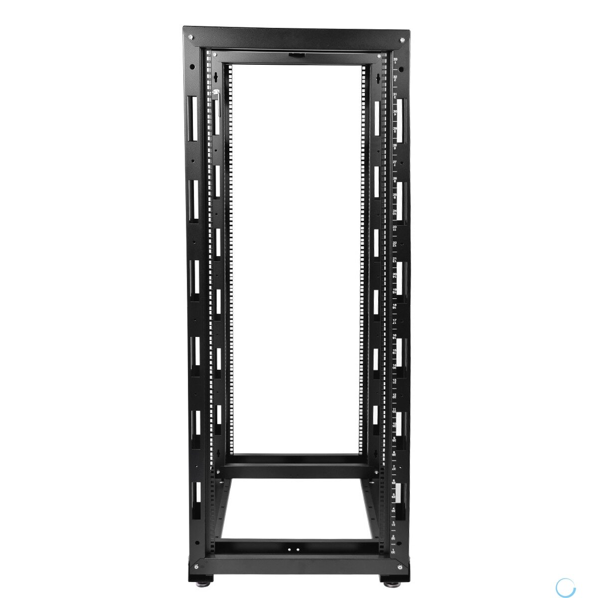 Универсальные стойки 19 имеют полностью разборную двухрамную конструкцию, каркас повышенной жесткости скреплен болтами с внутренними шестигранниками. Вертикальные направляющие имеют юнитовую маркировку. Для удобства монтажа и коммутации оборудования предусмотрены развитая перфорация, широкий спектр аксессуаров и система заземления. Двухрамная универсальная стойка 19 имеет регулировку полезной глубины - 750/620/580/450. При организации крупных коммутационных узлов возможно крепление стоек между собой через вертикальный кабельный органайзер. Удобство установки обеспечивают массивные опорные кронштейны и регулируемые винтовые опоры (ножки), компенсирующие неровности пола.