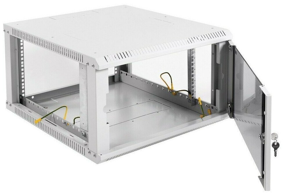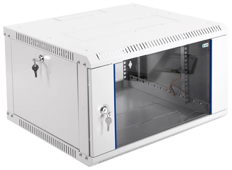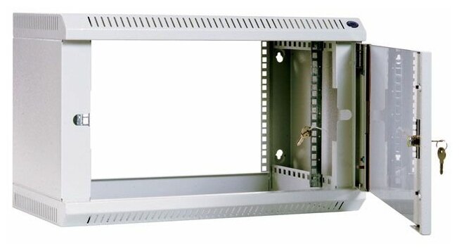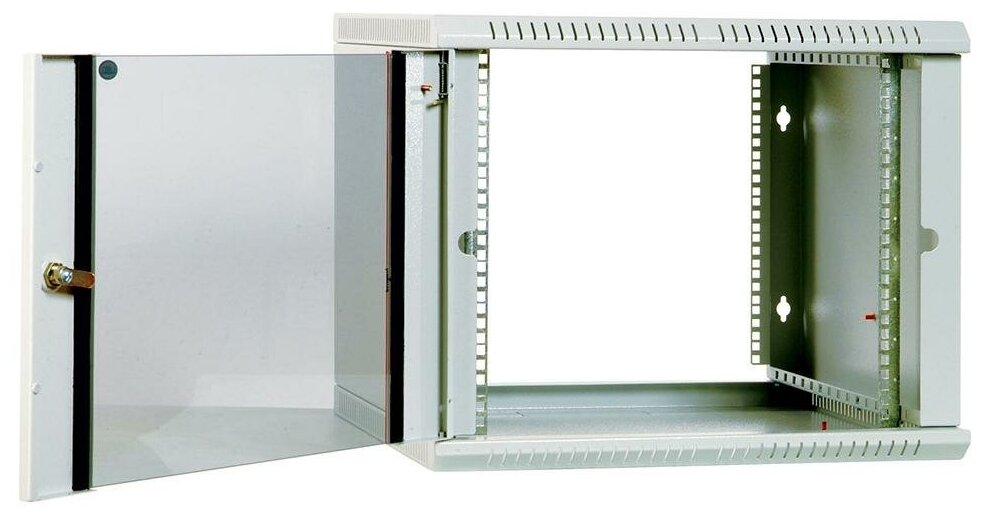 Настенный разборный шкаф 19 ЦМО предназначен для размещения активного и пассивного телекоммуникационного оборудования. Шкаф удобен для организации сетей в зданиях, где возможно затруднение в доставке и хранении неразборных шкафов, так как имеет полностью разборную конструкцию и состоит из пяти основных частей: крыша, дно, две передние направляющие, две боковые стенки c вертикальными направляющими, дверь. За счет элементов крепления каркас шкафа имеет повышенную жесткость. Возможна комплектация металлической дверью и дверью с тонированным стеклом. Возможна установка двери как с правой, так и с левой стороны. Дверь фиксируется точечным замком. Предусмотрены два кабельных ввода в верхней и нижней частях шкафа, размер - 95х40мм. Перфорация обеспечивает хорошую вентиляцию установленного оборудования. В основание или крышу шкафа возможна установка вентиляторного модуля МВ-400-2. Для установки модуля демонтируется заглушка, и модуль фиксируется шестью винтами. Вертикальные направляющие регулируются по глубине. Система заземления входит в стандартную комплектацию. Возможна установка задней стенки.
