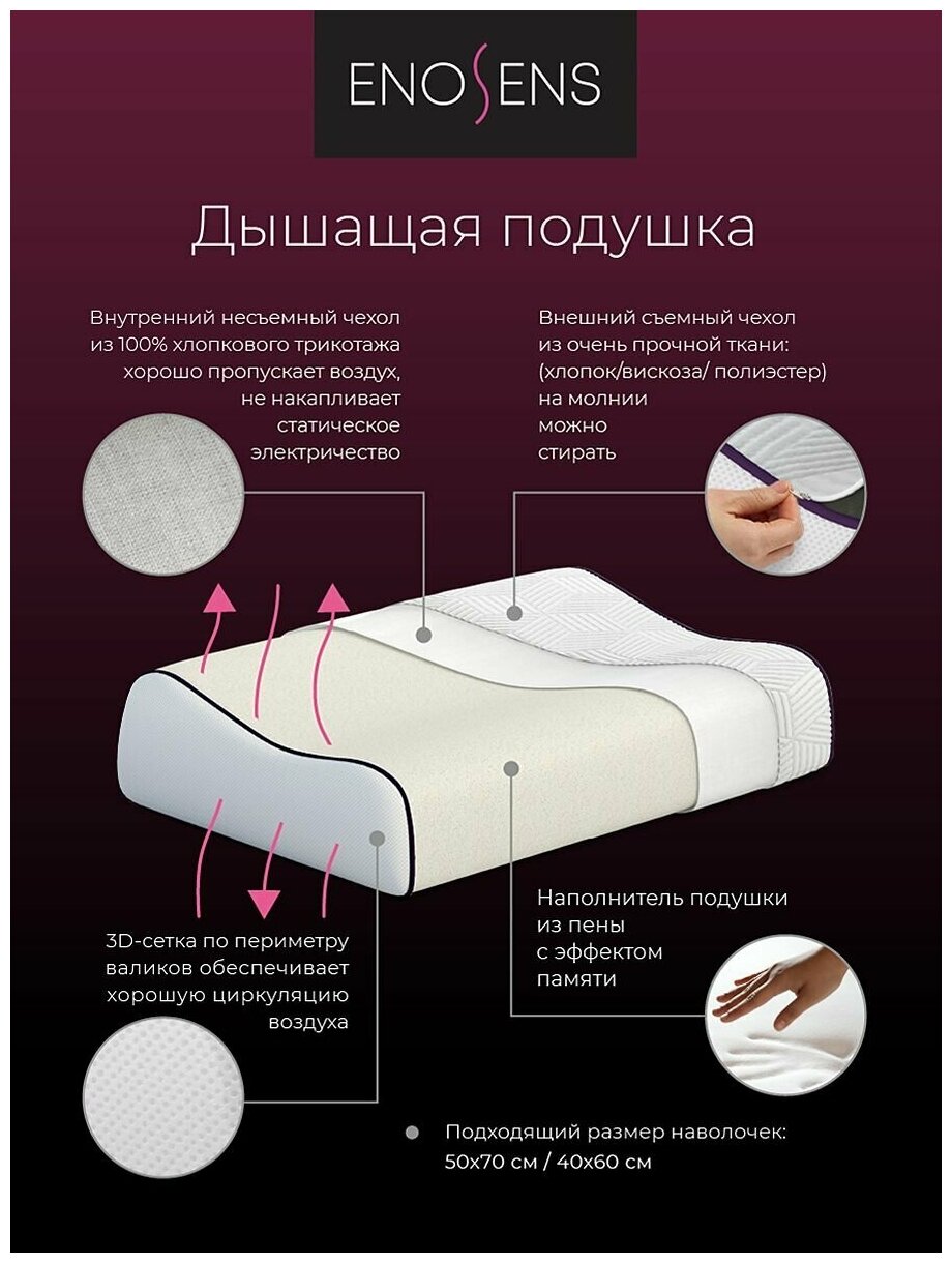 Подушка эргономичная 36 х 48 см Enosens No stress M (90.10)