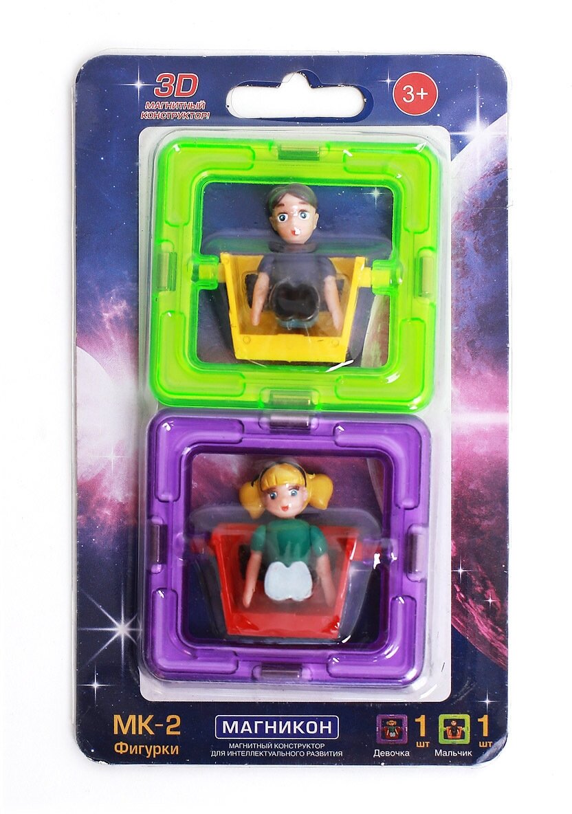 Конструктор магнитный Магникон. Человечки - набор дополнительных элементов, которые пригодятся владельцам одноименных комплектов. «Магникон» - современный конструктор, который предоставляет широкие возможности для 3D конструирования благодаря новому методу крепления деталей, которые могут соединяться между собой посредством внутренних магнитов. Это свойство позволит будущему владельцу максимально реализовать свой потенциал, собирая объемные постройки и модельки. В процессе конструирования ребенок познакомится не только с основными геометрическими фигурами, но и разовьет свою мелкую моторику рук и пространственное мышление.