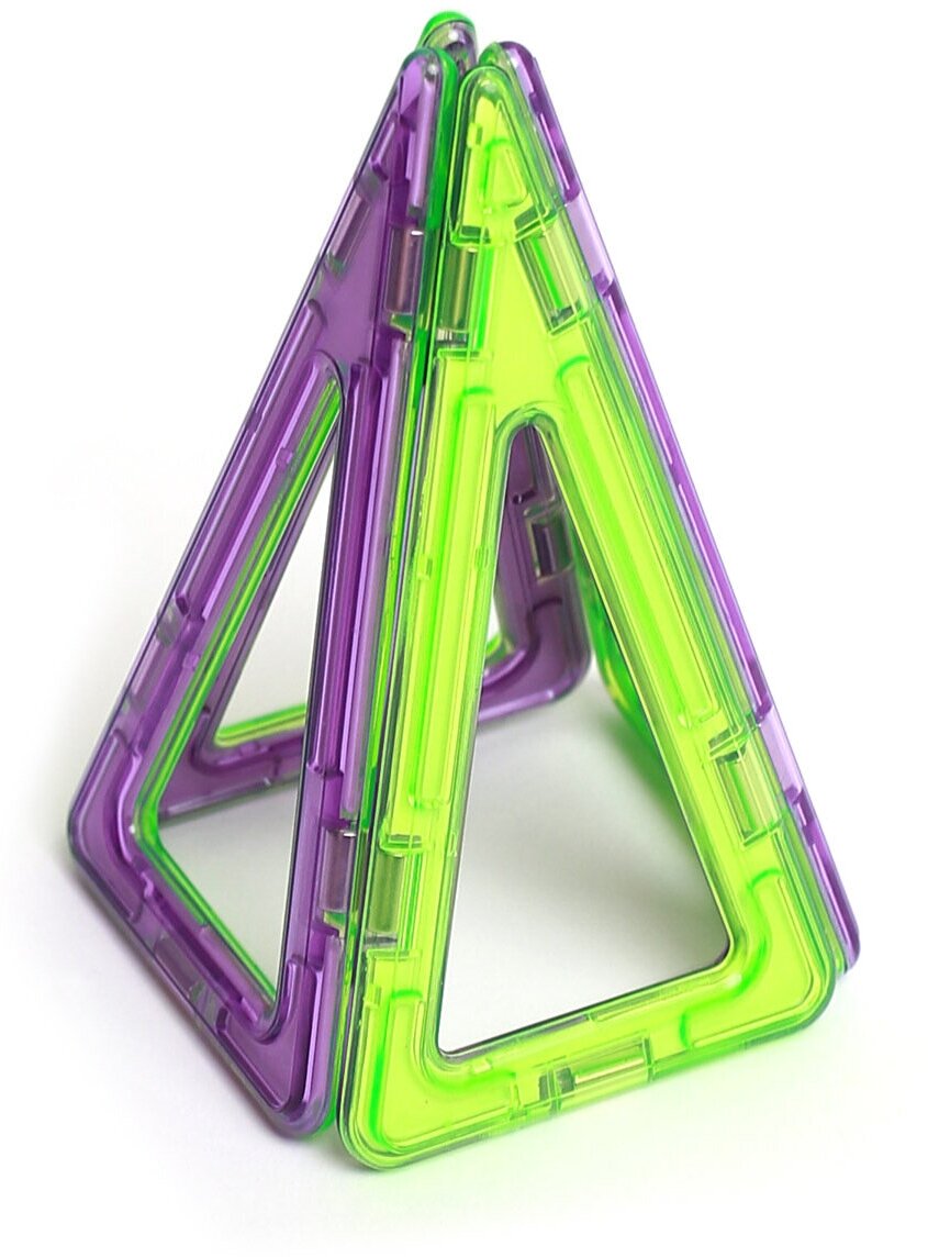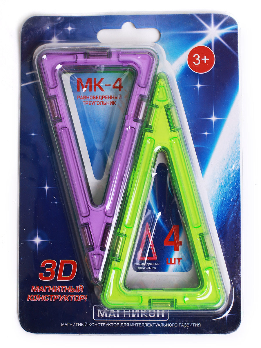 Конструктор магнитный Магникон. Треугольники - набор дополнительных элементов, которые пригодятся владельцам одноименных комплектов. «Магникон» - современный конструктор, который предоставляет широкие возможности для 3D конструирования благодаря новому методу крепления деталей, которые могут соединяться между собой посредством внутренних магнитов. Это свойство позволит будущему владельцу максимально реализовать свой потенциал, собирая объемные постройки и модельки. В процессе конструирования ребенок познакомится не только с основными геометрическими фигурами, но и разовьет свою мелкую моторику рук и пространственное мышление.
