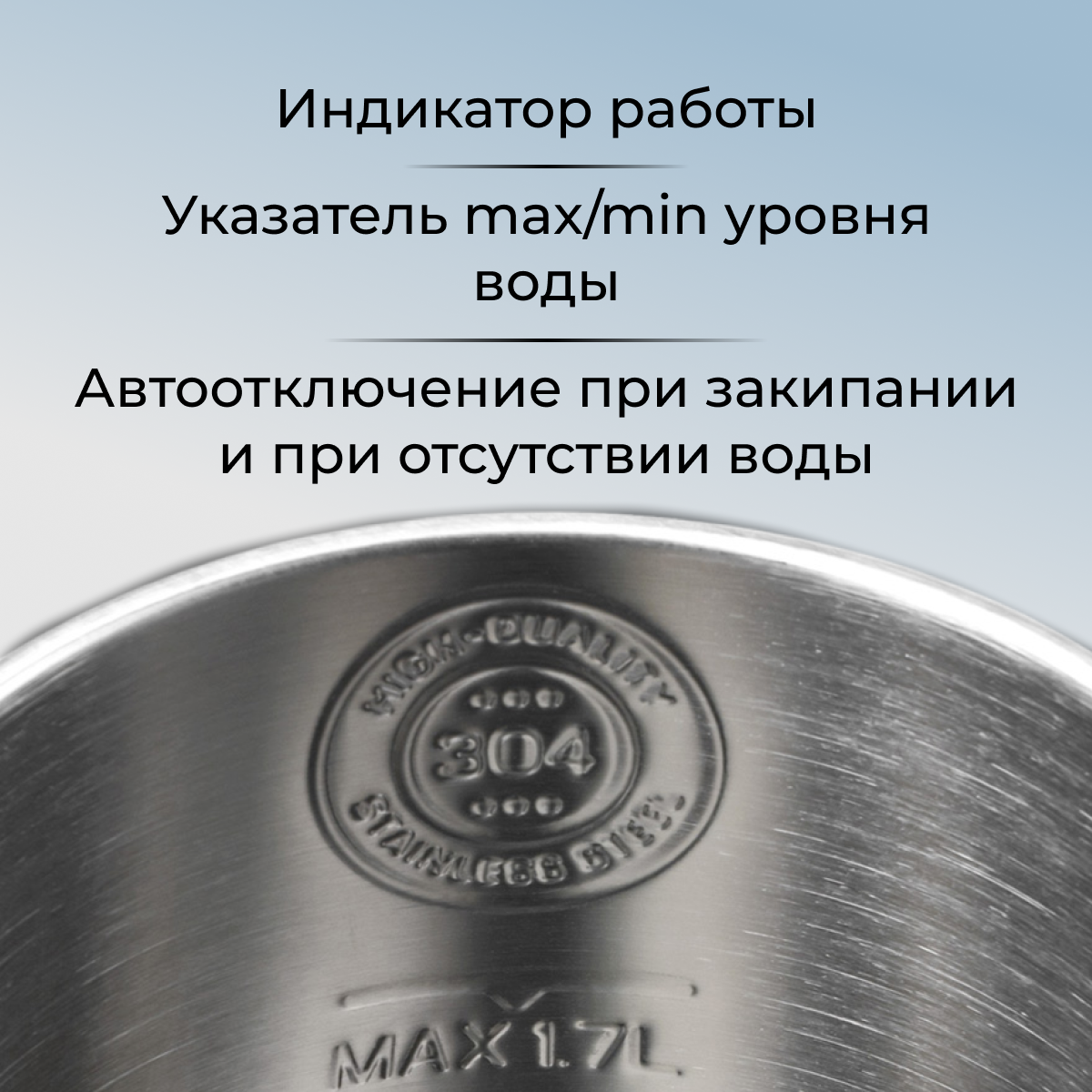 | Безопасность | блокировка включения без воды, автоотключение при закипании воды |