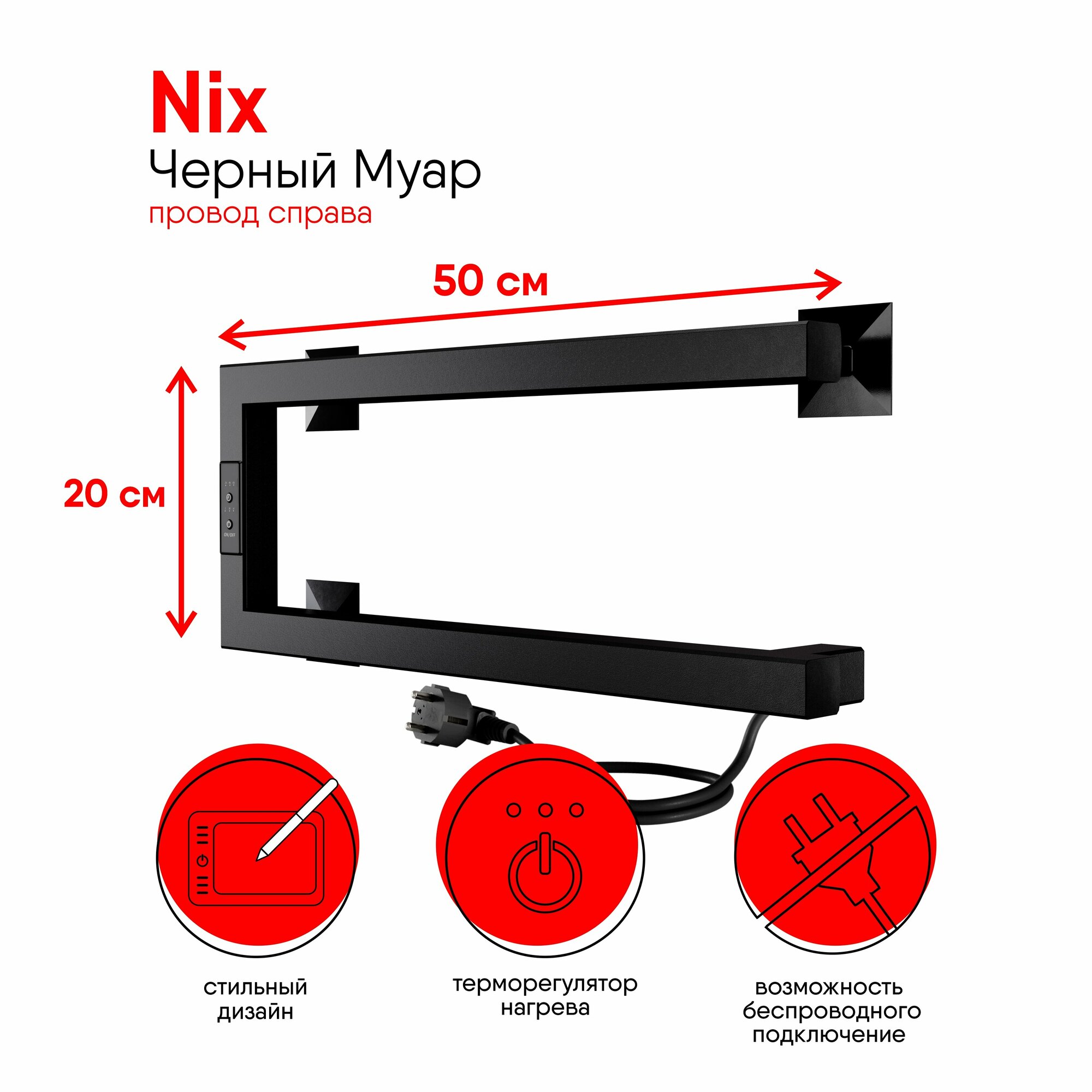 Полотенцесушитель электрический Indigo Nix 20x50 DGN20-50BRRt черный муар (размер: 20x50 см)