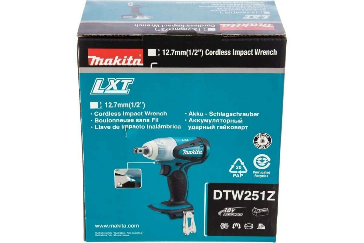 Ударный гайковерт Makita DTW251Z, патрон: квадрат 1/2", питание от аккумулятора