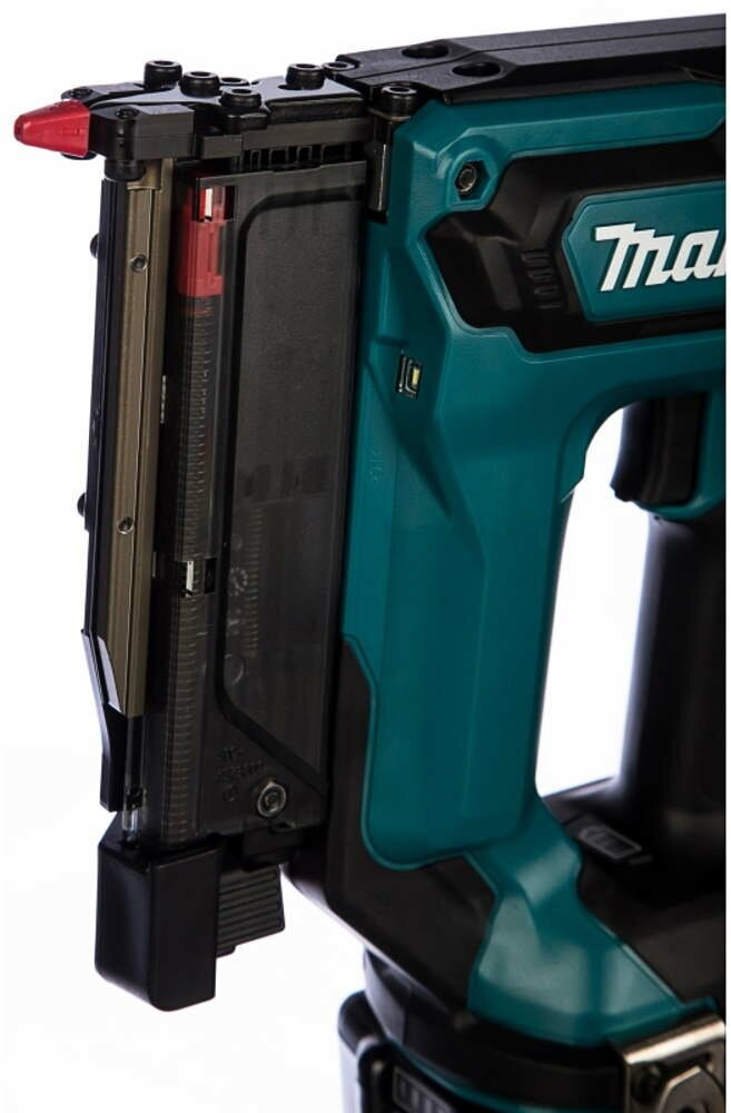 Makita DPT353RFE - аккумуляторный гвоздезабиватель, который отличается эффективностью и крайне полезный во множестве ситуаций агрегат с превосходными техническими характеристиками. Рассматриваемый инструмент служит для выполнения работ по креплению разных типов материалов к древесине. Он рассчитан на серийное решение подобных задач. Благодаря тому, что предлагаемый гвоздезабиватель функционирует без сети, его можно без всяких трудностей использовать в разных местах.