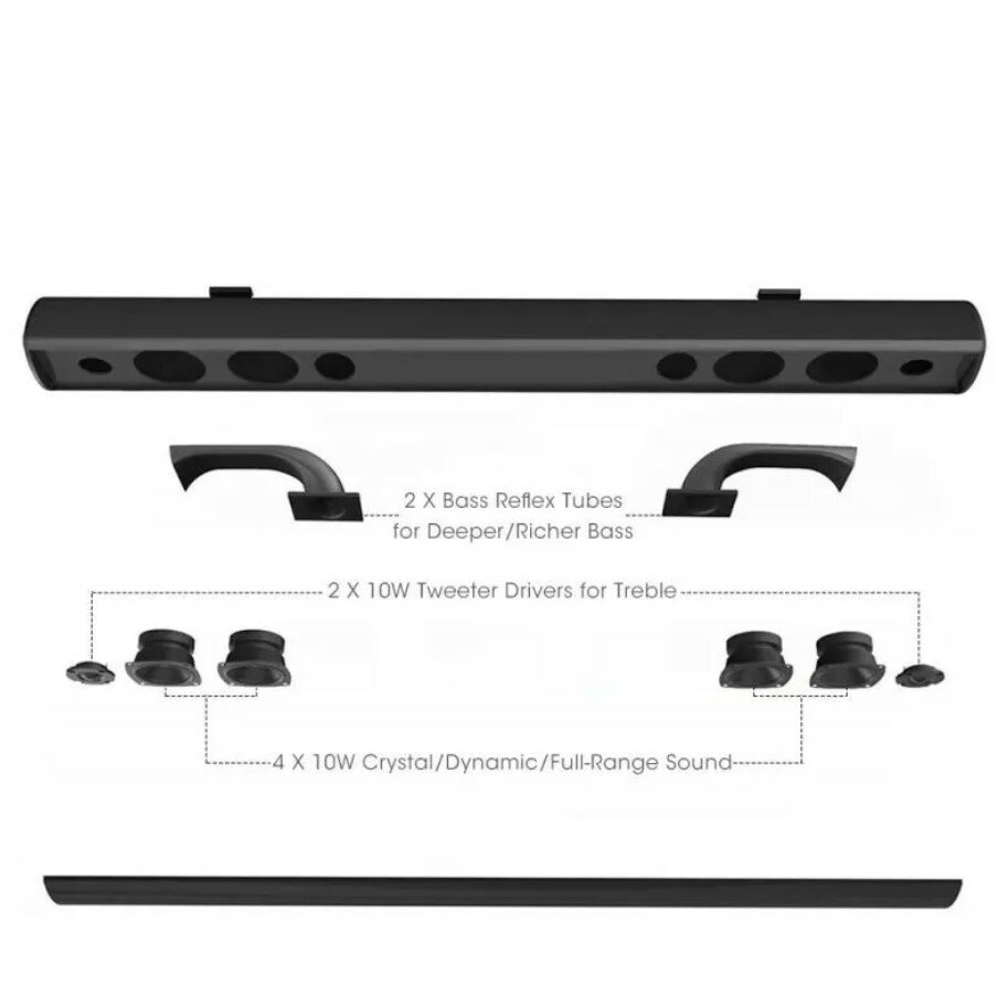 Благодаря фазоинвекторным трубкам, достигается высокий уровень качества звука и громкости , для более глубокого баса ,испускающих "лучи звука".Так же представляет 4 основных динамика полного диапазона высокой мощности, для качественного и обьемного звука Компоновка динамиков массива оптимизирована таким образом, что отражательные свойства лучей усиливаются для получения максимально возможного качества звучания.