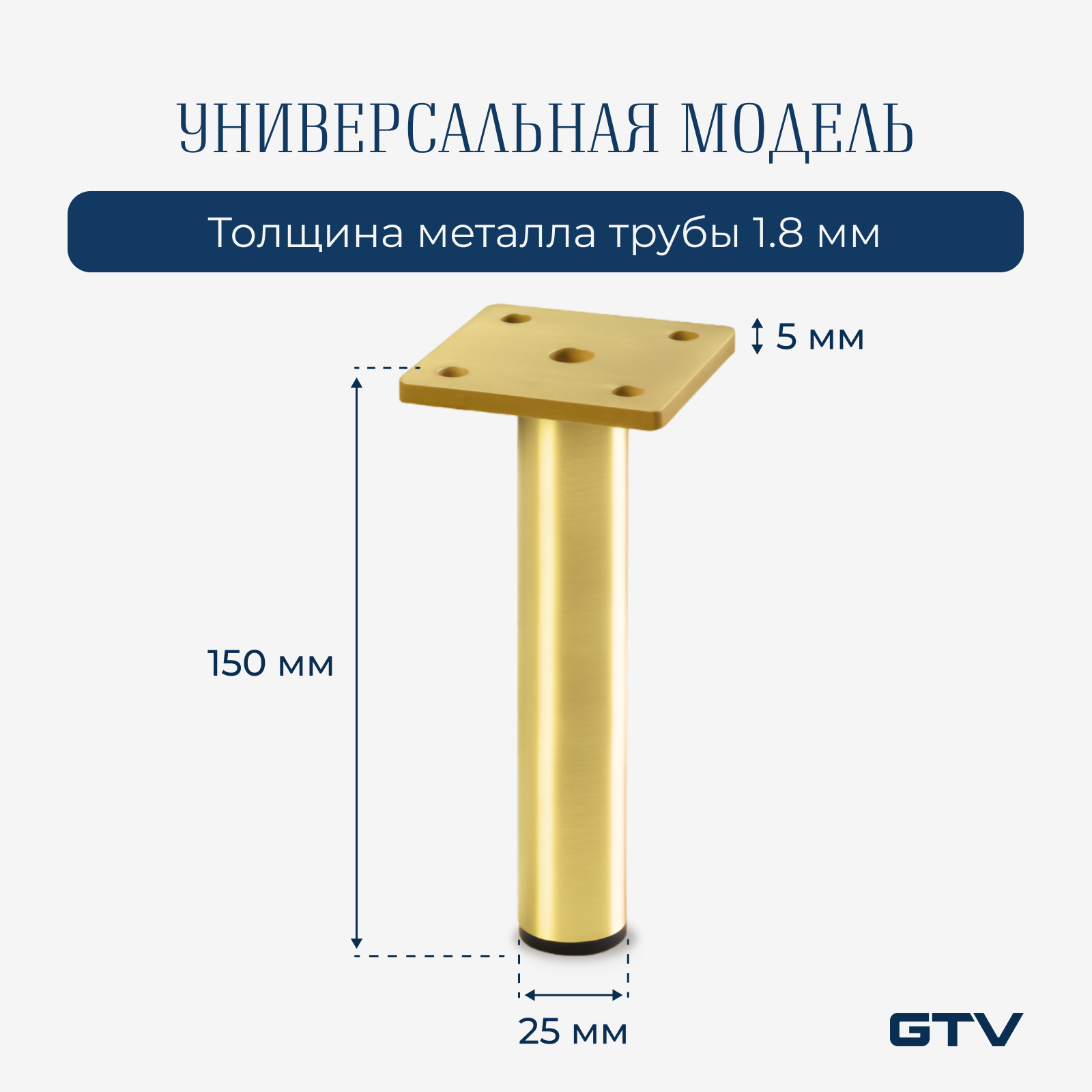 Ножка мебельная RONDA Simple h-180мм брашированное золото GTV (NM-RONDA-S-180-18)
