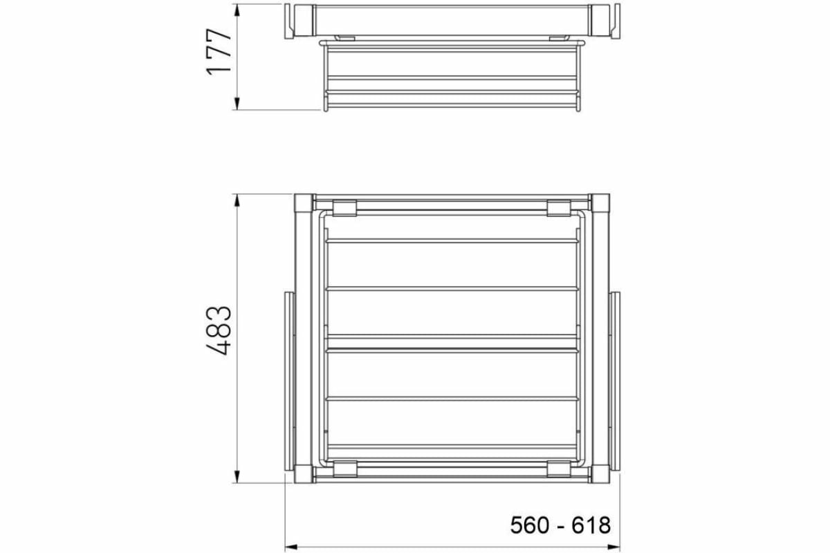 Ширина установки полки регулируется в диапазоне 560 - 618 мм.КОМПЛЕКТАЦИЯ