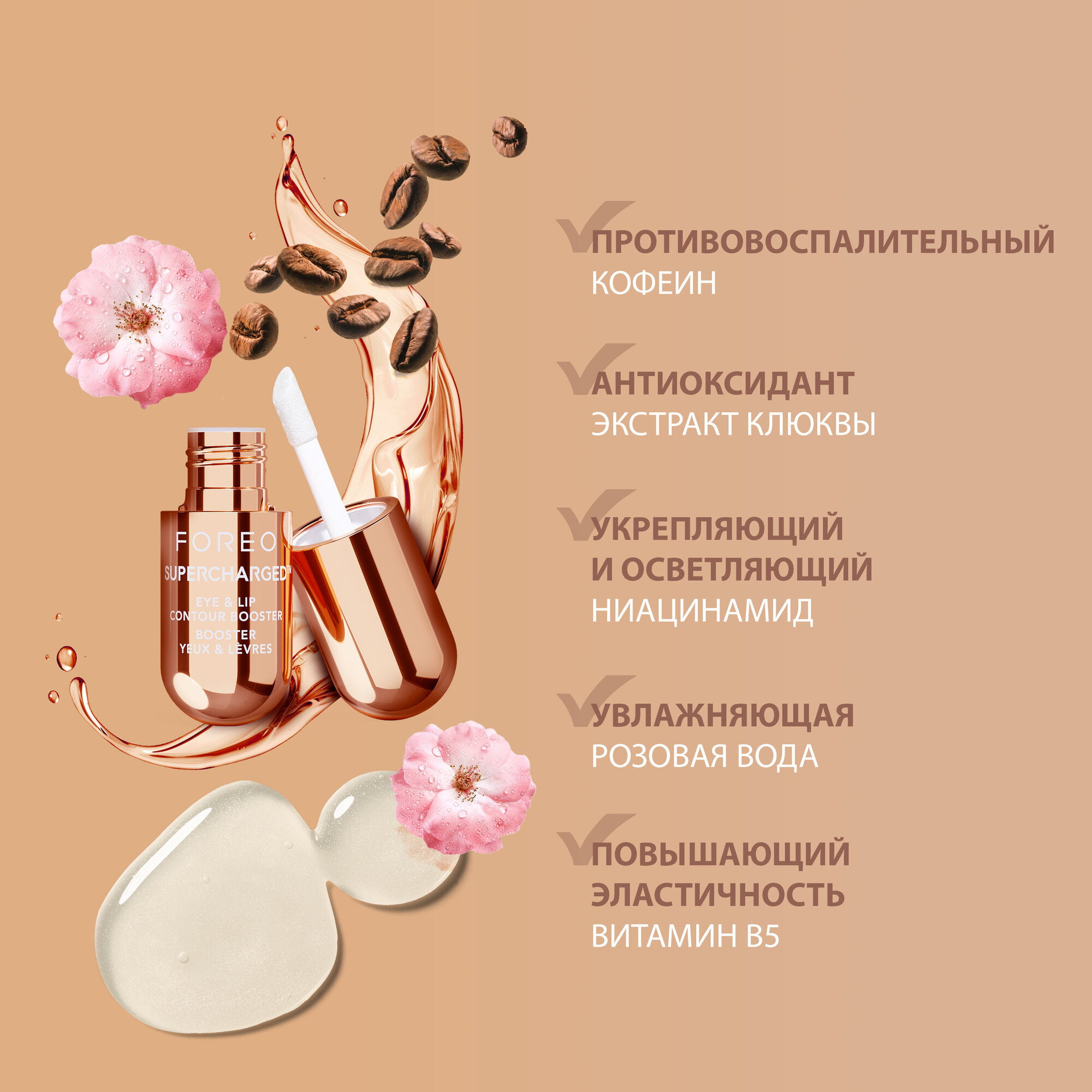 SUPERCHARGED Eye & Lip Contour Booster — проводящая сыворотка, предназначенная для использования с микротоковым массажером BEAR 2 Eyes & Lips. Средство разглаживает, подтягивает и увлажняет кожу вокруг глаз и губ, осветляет темные круги, уменьшает отечность и выраженность морщин. В упаковке — 3 капсулы по 3,5 мл. Не тестируется на животных. Подходит веганам.