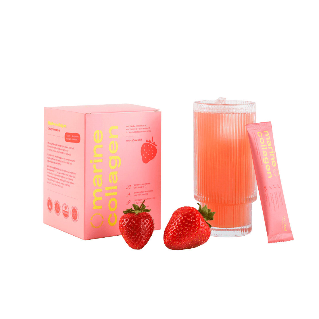 Re-Feel Морской коллаген с клубникой витамином C и гиалуроновой кислотой Marine Collagen в стиках 1625 гр