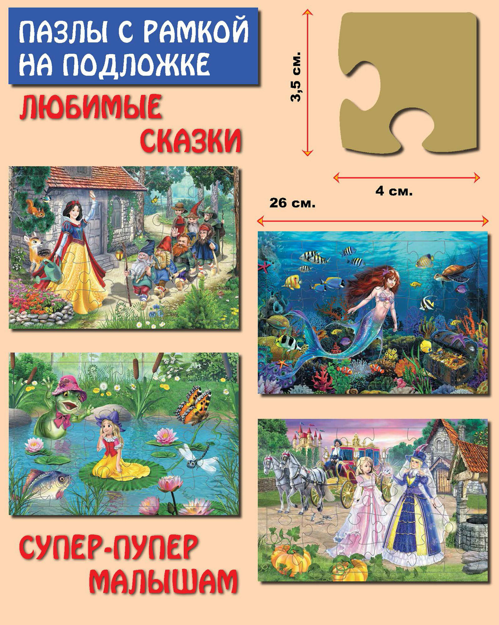 Комплект пазлов "Любимые сказки". В наборе 4 штуки.