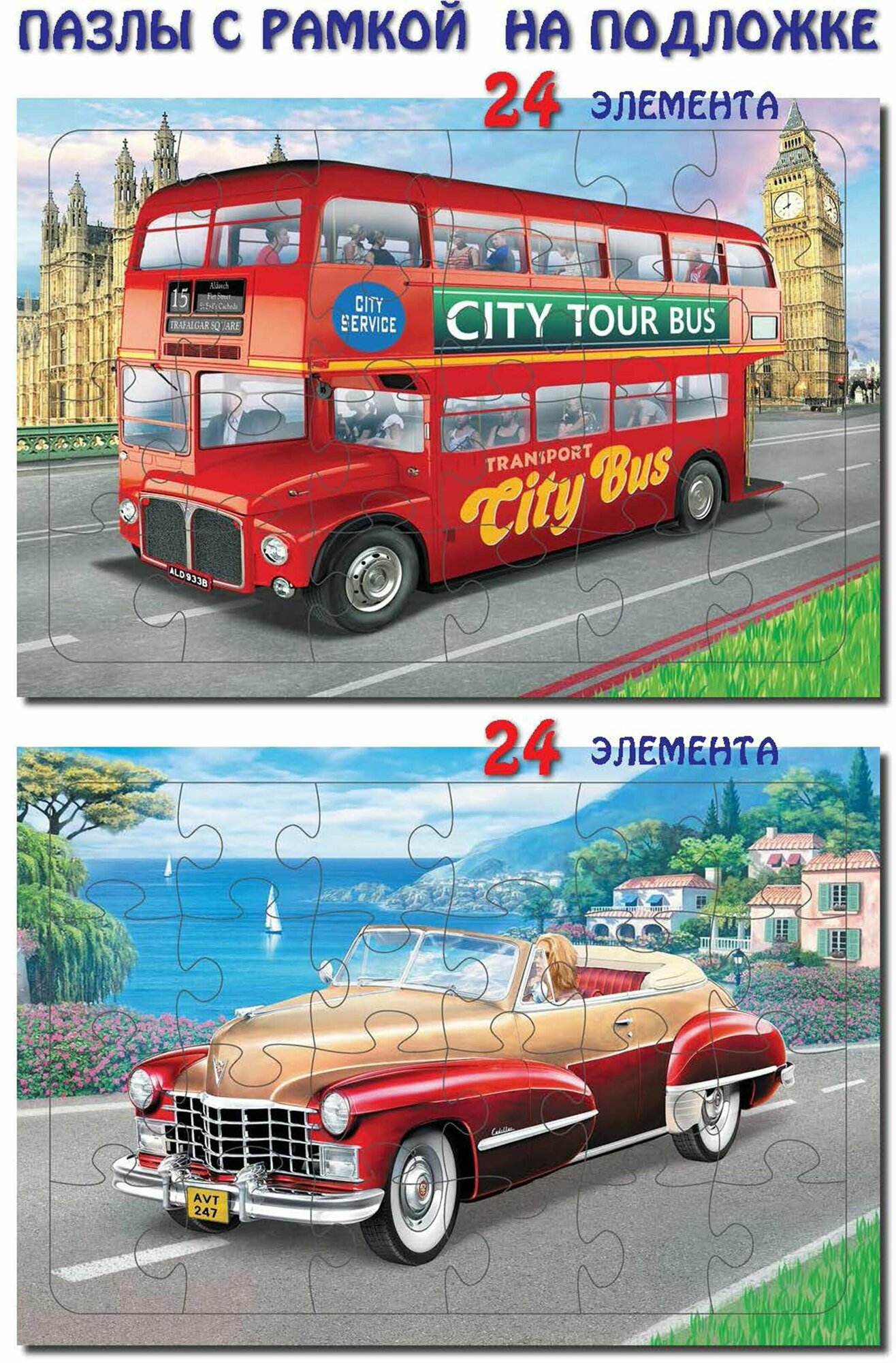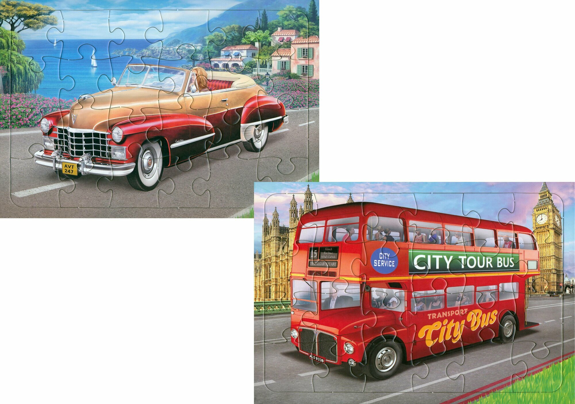 Комплект пазлов "Автобус, кабриолет". В наборе 2 штуки.