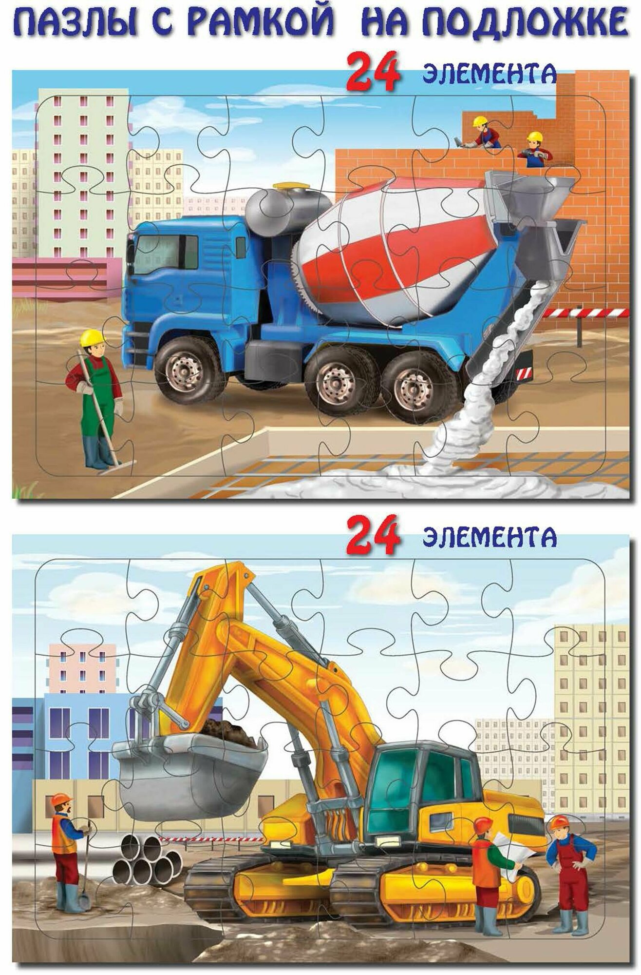 Комплект пазлов "Бетономешалка, экскаватор". В наборе 2 штуки.