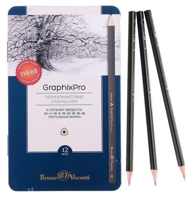 Набор чернографитовых карандашей GraphixPro 12 штук Bruno Visconti