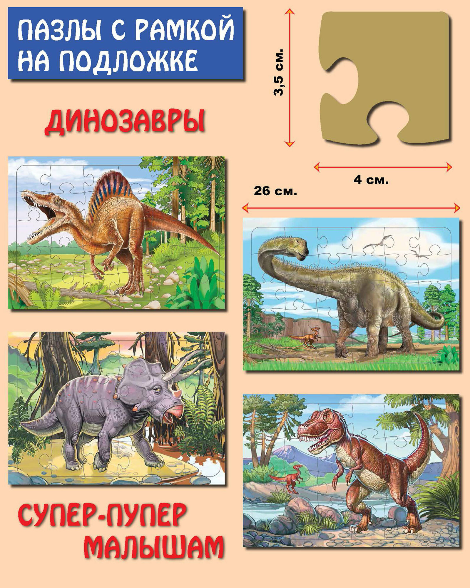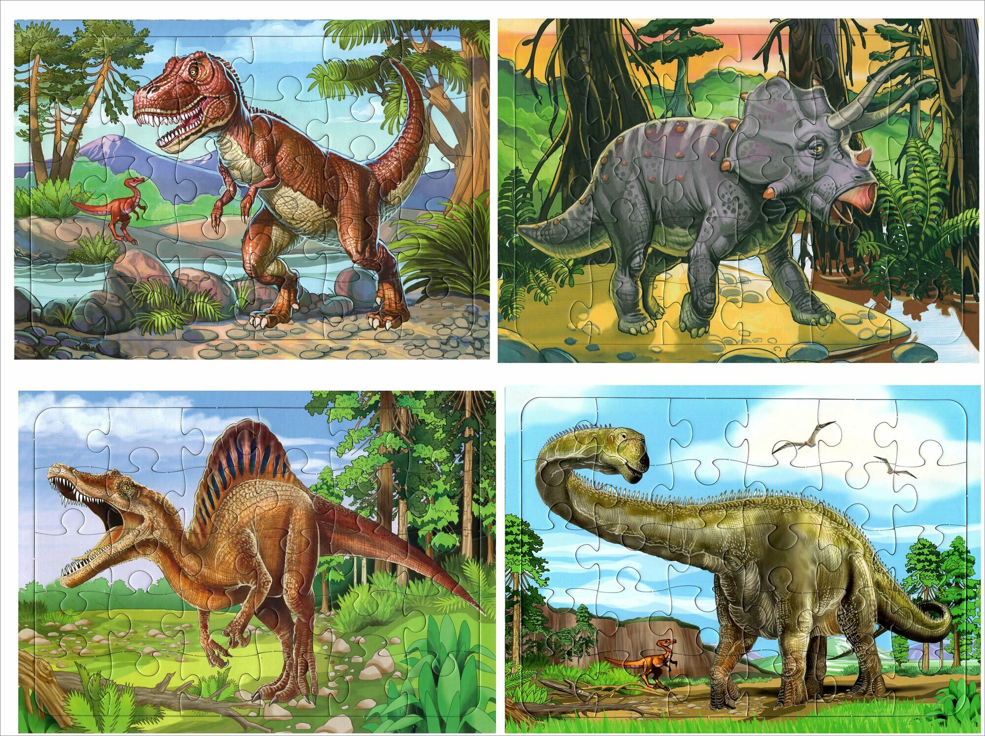 Комплект пазлов "Динозавры". В наборе 4 штуки.