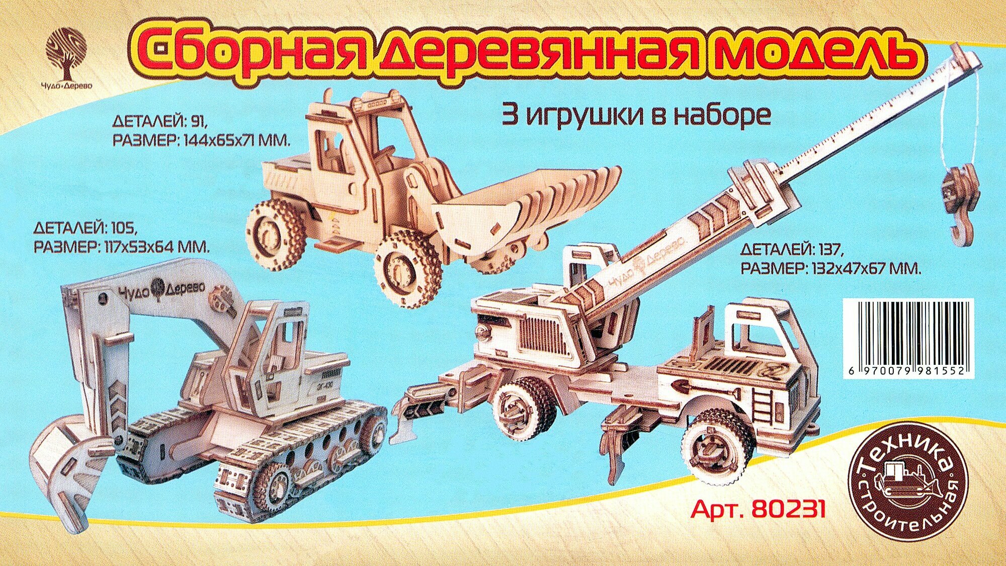 Сборная деревянная модель Набор строительных автомобилей 3 штуки ВГА