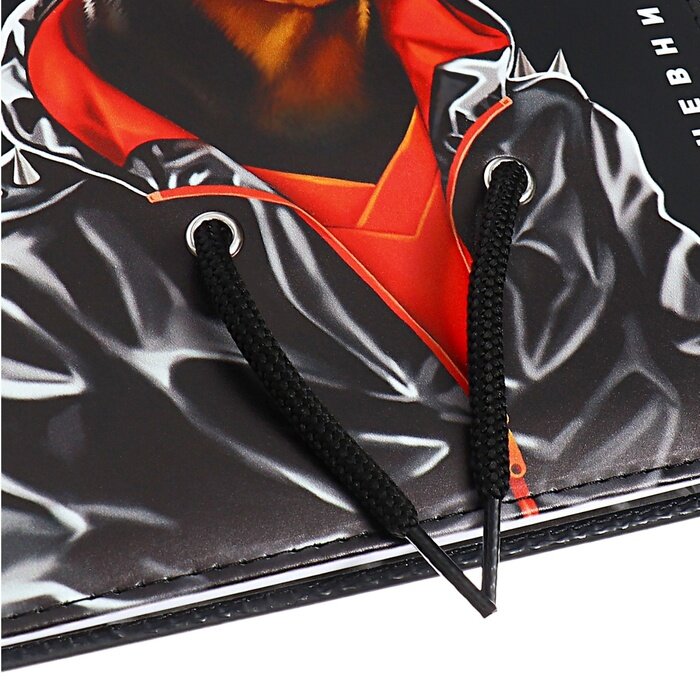 Обложка: искусственная кожа "Лейкер софт-тач", полноцветная печать, шнуровка декоративная в люверсах, обстрочка по периметру, углы обложки закруглённые, углы блока закруглённые.