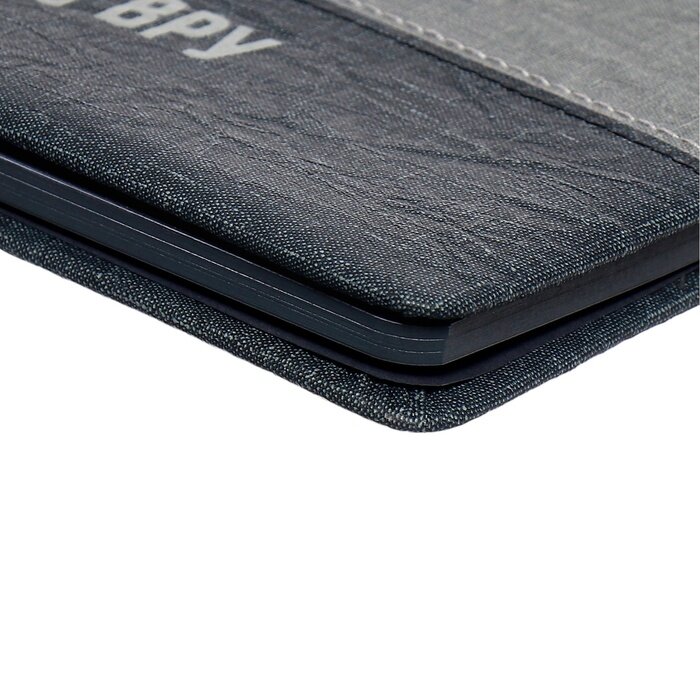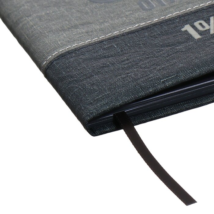Обложка: искусственная кожа "Лён крэш", отделочная строчка, шелкография в две краски, углы обложки закруглённые, углы блока закруглённые