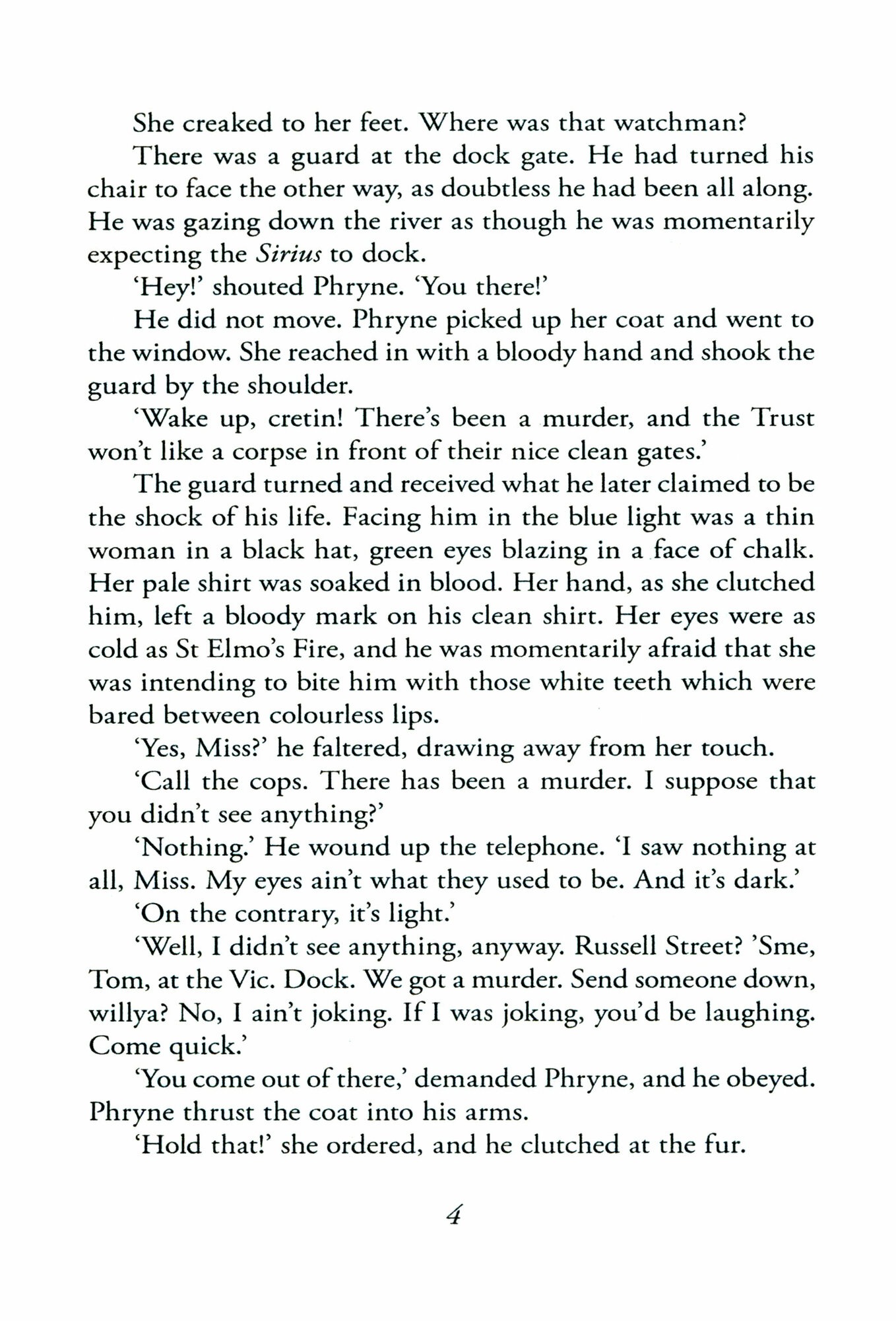 A very young man with muddied hair, a pierced ear and a blue tattoo lies cradled in Phryne’s arms. But sadly, it’s not another scene of glorious seduction – this time it’s death. The Honourable Miss Phryne Fisher, beautifully dressed in loose trousers, a cream silk shirt and a red-fox fur has just had her windscreen shot out inches in front of her divine nose. But worse is the fate of the pale young man lying on the road, his body hit by bullets, who draws his final blood-filled breath with Phryne at his side. Outraged by this brutal slaughter, Phryne promises to find out who is responsible. But Phryne doesn’t yet know how deeply into the mire she’ll have to go: bank robbery, tattoo parlours, pubs, spiritualist halls, and the Anarchists. Along this path, Phryne meets Peter, a battle-scarred, sexy Slav, who offers much more to her than just information. But all thoughts of these delights flee from Phryne’s mind when her beloved maid, Dot, disappears. There’s nothing Phryne won’t do to get her back safely.