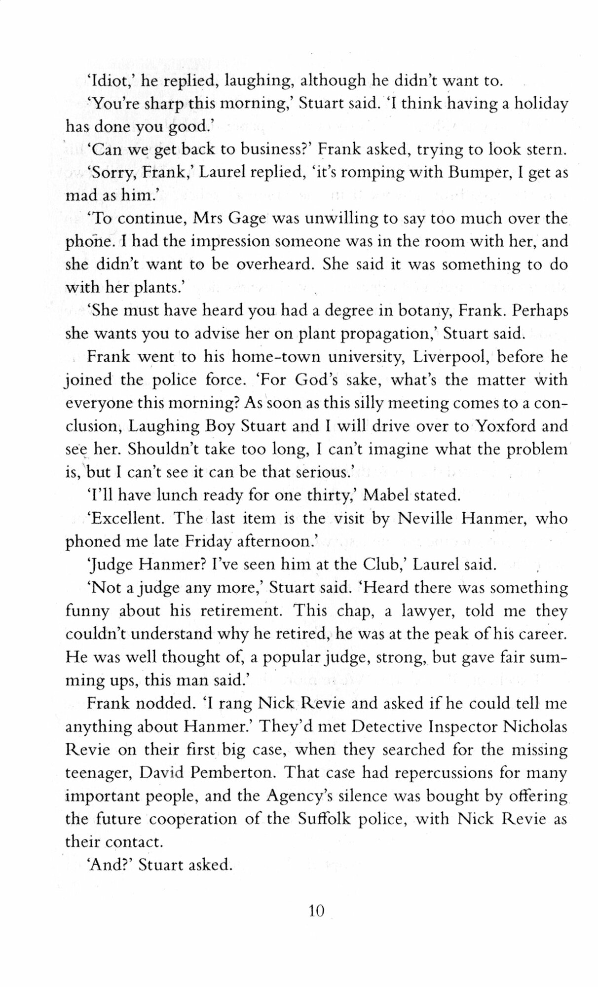 Laurel, Frank, and the rest of the team are busier than ever trying to solve the mysterious theft of rare plants from Yoxford Hall Gardens. But when Judge Hanmer doesn't show for their meeting, they find themselves embroiled in yet another case - one that will take them to darker places than they've ever been before.