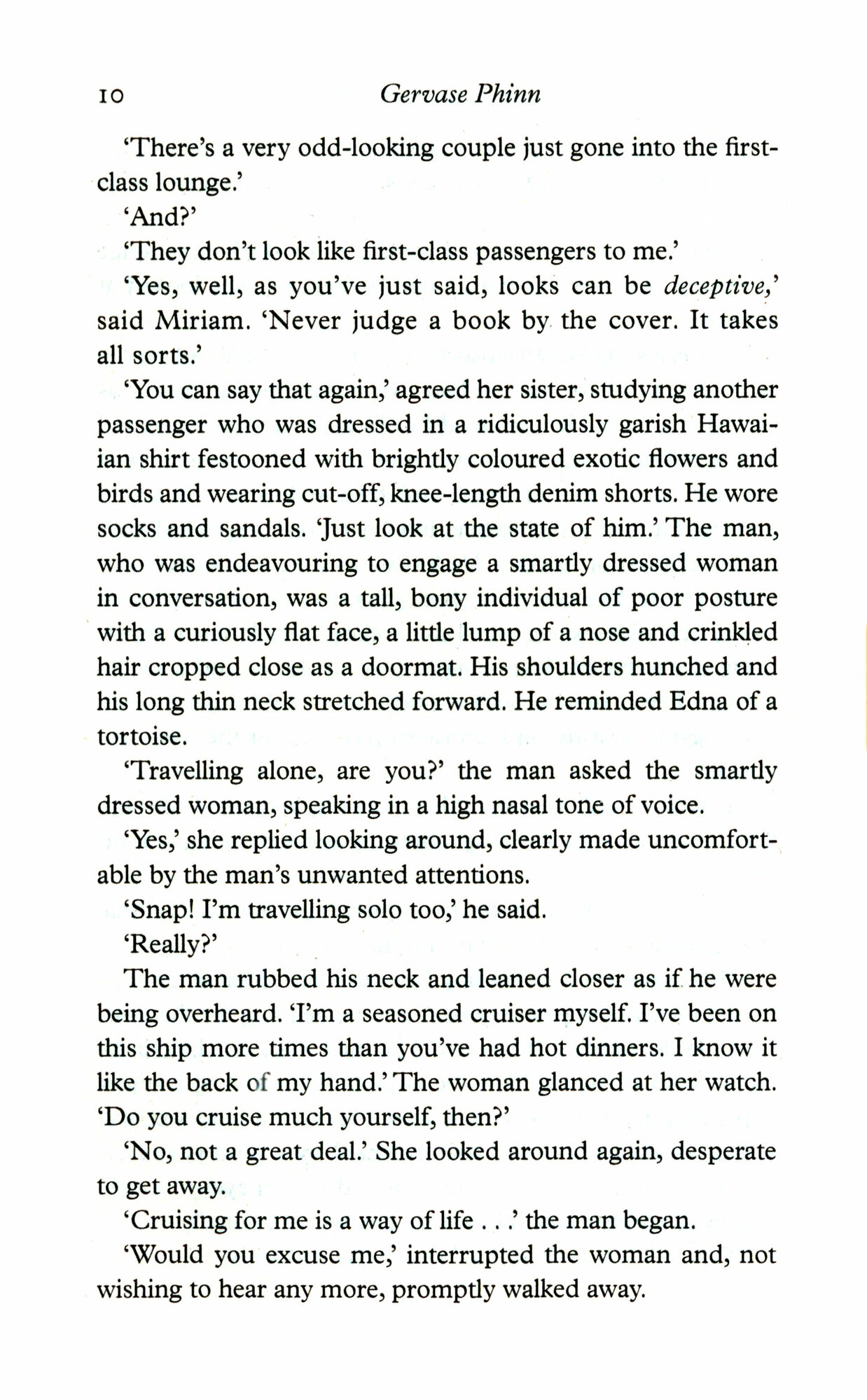For bickering couple Albert and Maureen, the trip might prove a much-needed escape - or the final straw. Elegant Frances de la Mare is determined to hobnob with the right kind of people - but her penthouse suite proves lonelier than she ever imagined. Meanwhile, precocious twelve-year-old Oliver discovers that guidebooks don't teach you everything, sparks fly when the port lecturer finds himself upstaged by a popular author, dancers Bruce and Babs can't keep in step, and cruise expert Neville just wants someone to speak to.