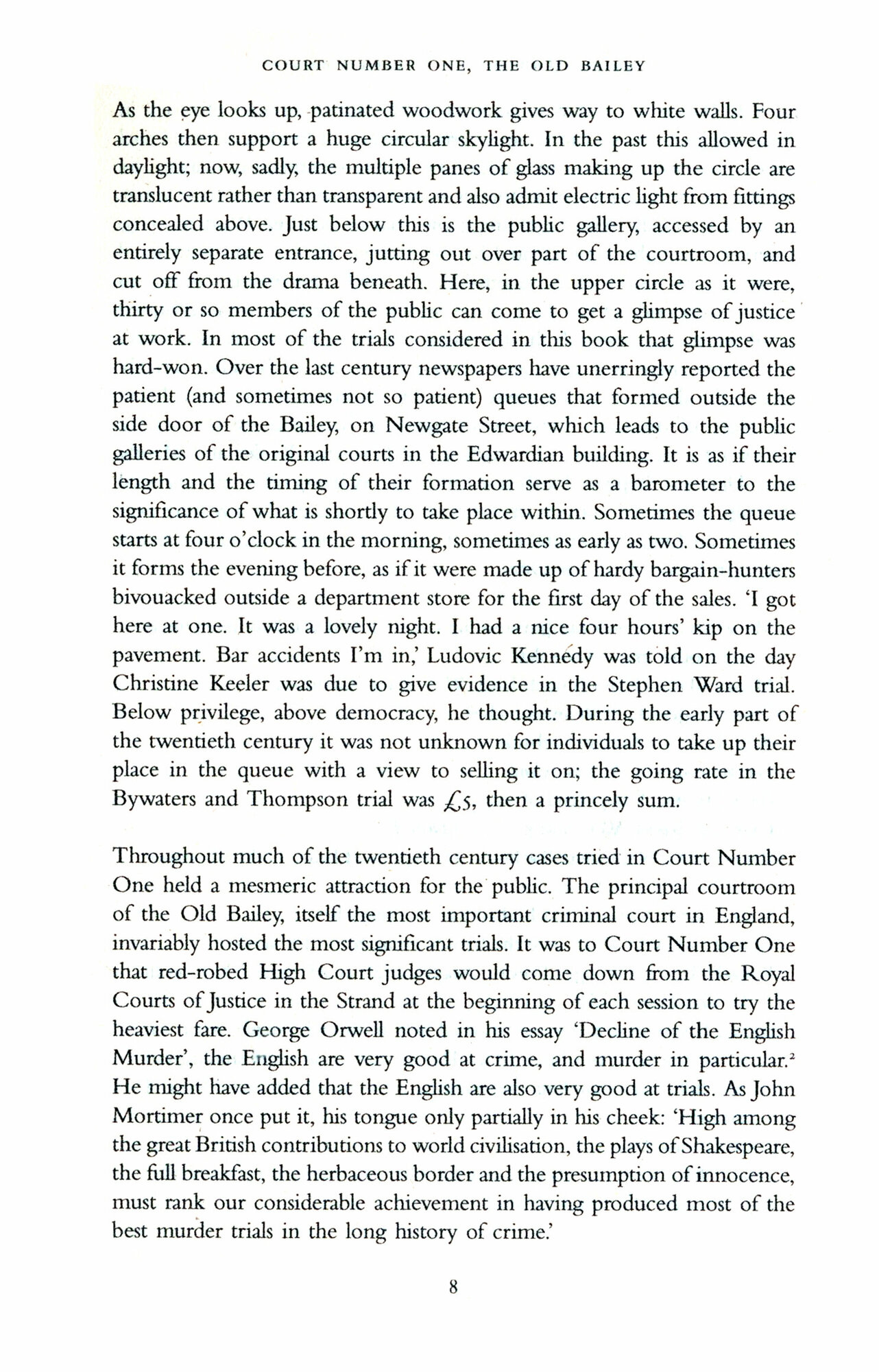 The principal criminal court of England, historically reserved for the more serious and high-profile trials, Court Number One opened its doors in 1907 after the building of the 'new' Old Bailey. In the decades that followed it witnessed the trials of the most famous and infamous defendants of the twentieth century. It was here that the likes of Madame Fahmy, Lord Haw Haw, John Christie, Ruth Ellis, George Blake (and his unlikely jailbreakers, Michael Randle and Pat Pottle), Jeremy Thorpe and Ian Huntley were defined in history, alongside a wide assortment of other traitors, lovers, politicians, psychopaths, spies, con men and - of course - the innocent.