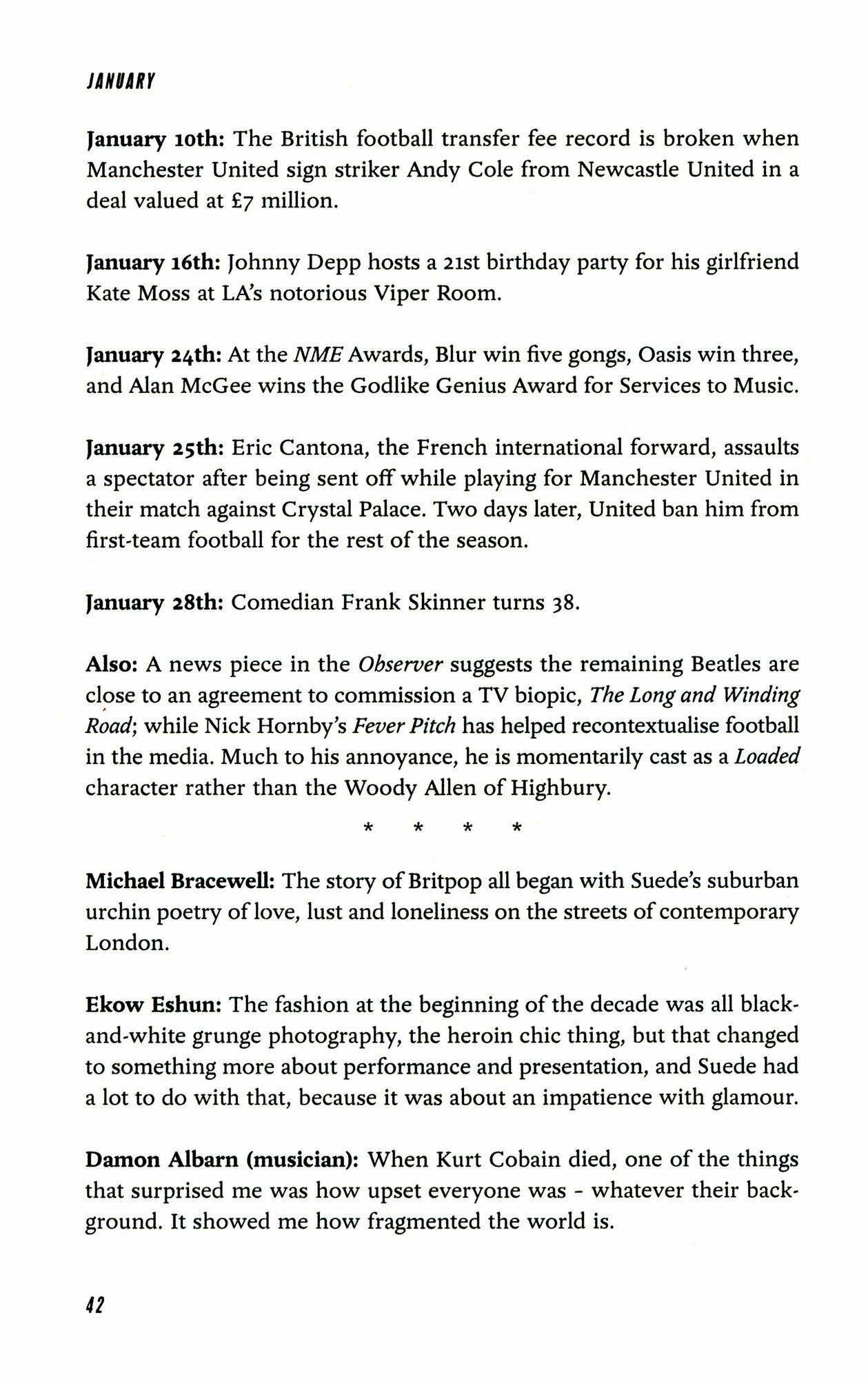 Faster Than a Cannonball is a cultural swipe of the decade from loungecore to the rise of New Labour, teasing all the relevant artistic strands through interviews with all the major protagonists and exhaustive re-evaluations of the important records of the year, by artists including Radiohead, Teenage Fanclub, Tricky, Pulp, Blur, the Chemical Brothers, Supergrass, Elastica, Spiritualized, Aphex Twin and, of course, Oasis.