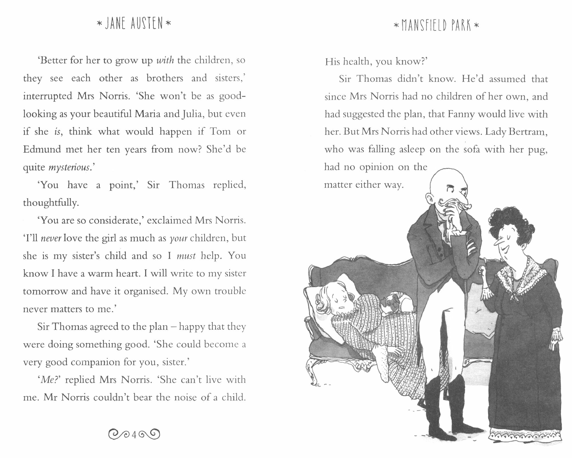 Eglantine Ceulemans captures all of Austen’s satire and wit, bringing her colourful casts to life with warm and funny black and white illustrations.