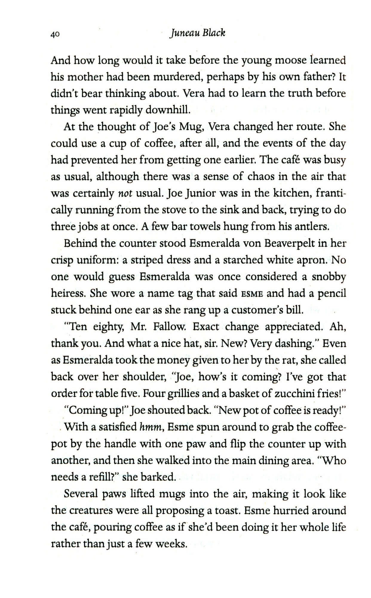 Ace reporter Vera Vixen only wants a good news story as harvest time arrives with the promise of glorious feasts ahead. But the discovery of the body casts a darker shadow. Soon enough, the coffeeshop's owner is being dragged down to the police station. Vera can't believe gentle Joe the moose is a killer. To get to the bottom of the matter, she will have to dig into the secrets her neighbours would rather leave buried forever . . .