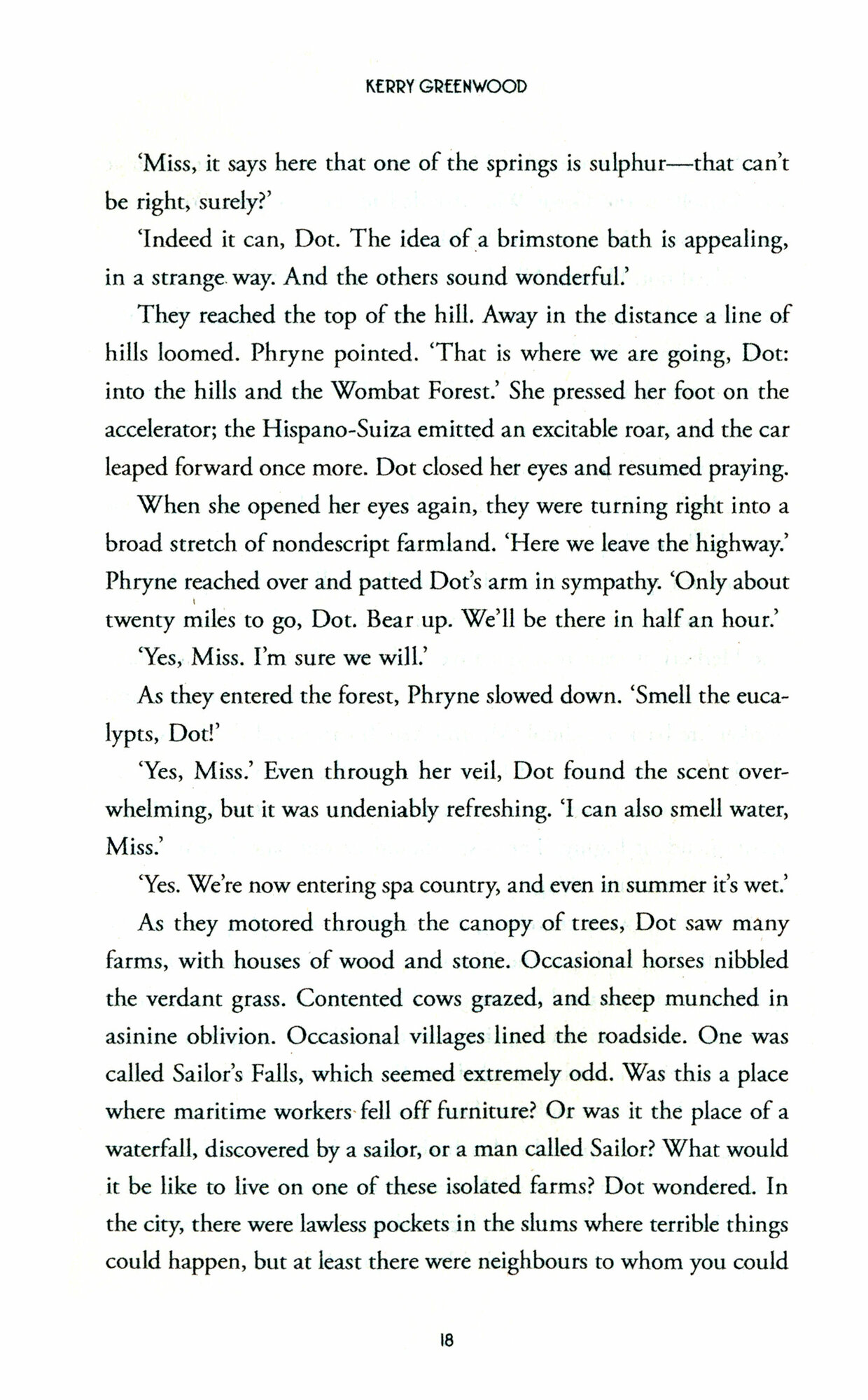 When a mysterious invitation arrives for the redoubtable Miss Phryne Fisher from an unknown retired Captain Herbert Spencer, Phryne's curiosity is excited. Spencer runs a retreat in Victoria's rural spa country for the many shell-shocked soldiers of the first world war. It's a cause after Phryne's own heart but what does Spencer want from her?