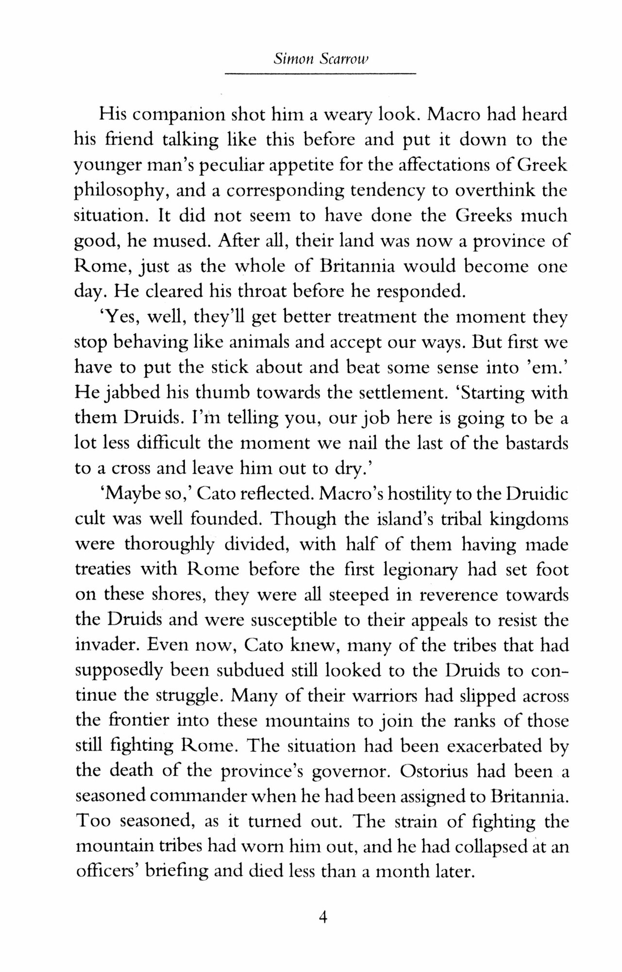 Wounded Centurion Macro remains behind in charge of the fort as Prefect Cato leads an invasion deep into the hills. Cato's mission: to cement Rome's triumph over the natives by crushing the Druid stronghold. But with winter drawing in, the terrain is barely passable through icy rain and snowstorms.