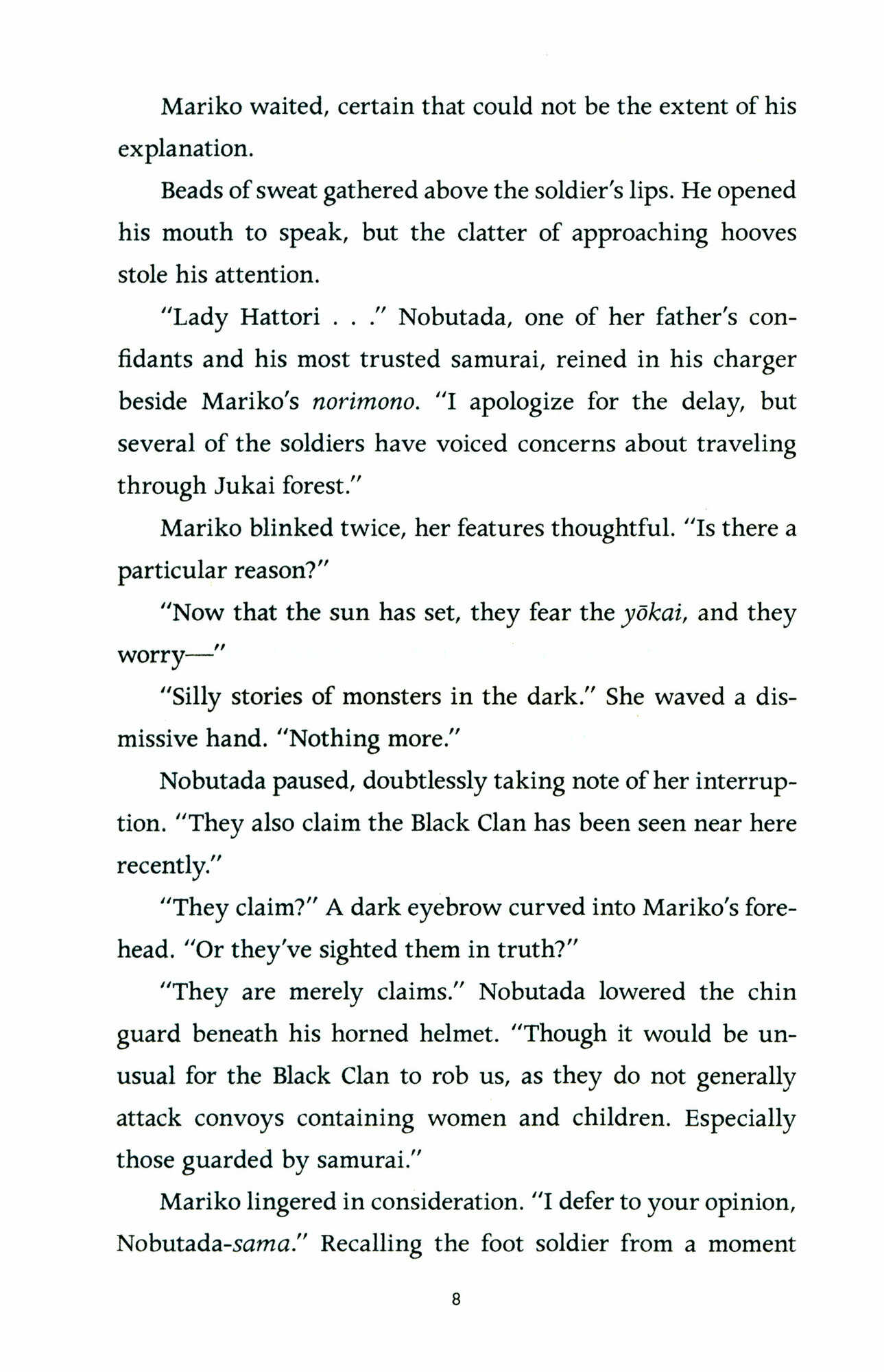 Disguising herself as a peasant boy, Mariko infiltrates the Black Clan's hideout and befriends their leader, the rebel ronin Ranmaru, and his second-in-command, Okami. Ranmaru and Okami warm to Mariko, impressed by her intellect and ingenuity. But as Mariko gets closer to the Black Clan, she uncovers a dark history of secrets that will force her to question everything she's ever known.