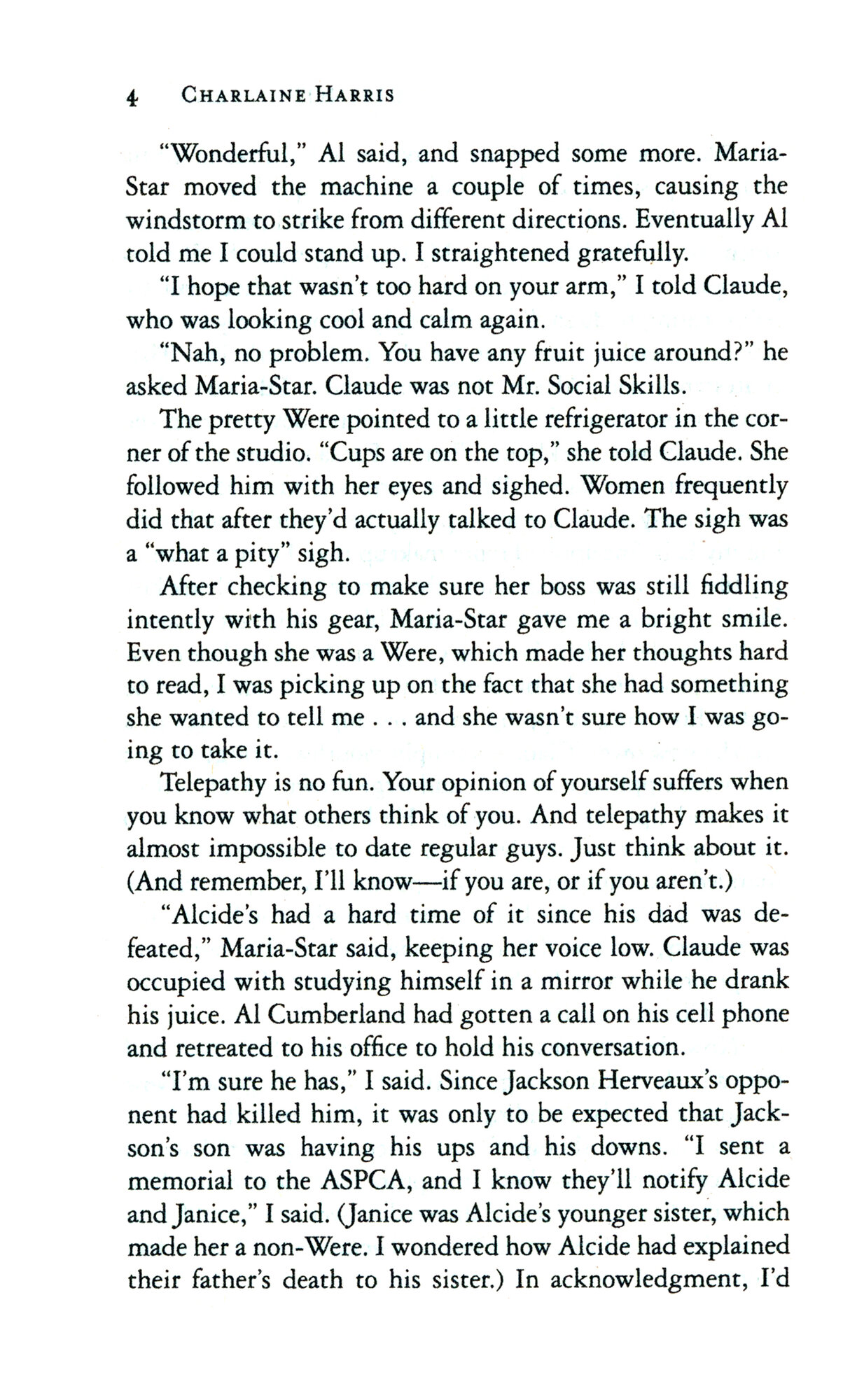 Sookie's life is once again on the line and this time the suspects range from the rogue werewolves who have rejected Sookie as a friend of the pack, to her first love, the vampire Bill.