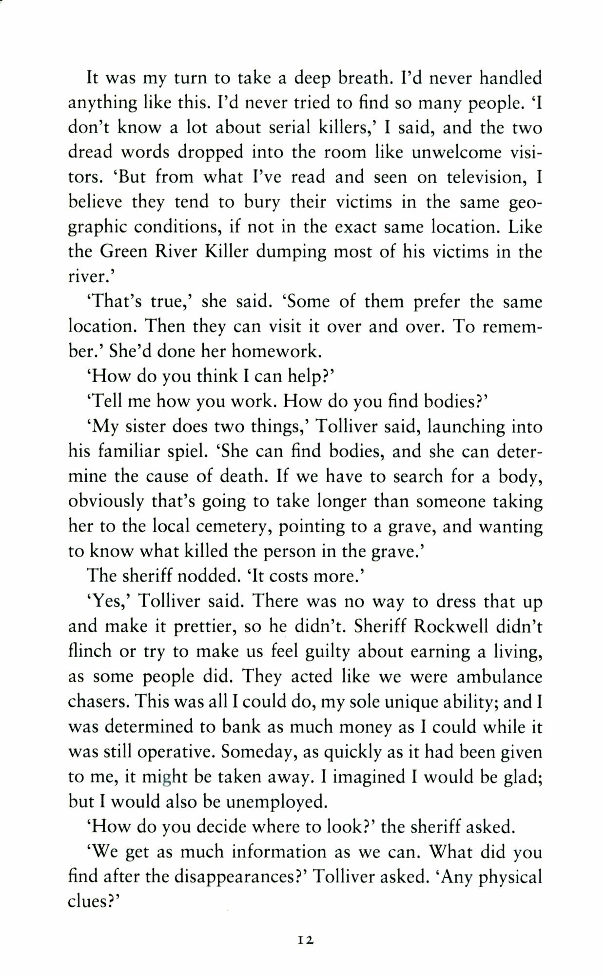 Harper Connelly was struck by lightning as a teenager - now she can find dead people and uses her special talent to make a living. Hired to locate a missing boy, Harper and her stepbrother Tolliver head to Doraville, North Carolina. But the truth is far worse than they feared. Numerous teenaged boys have disappeared from Doraville over the years. All unlikely runaways. All calling for Harper.