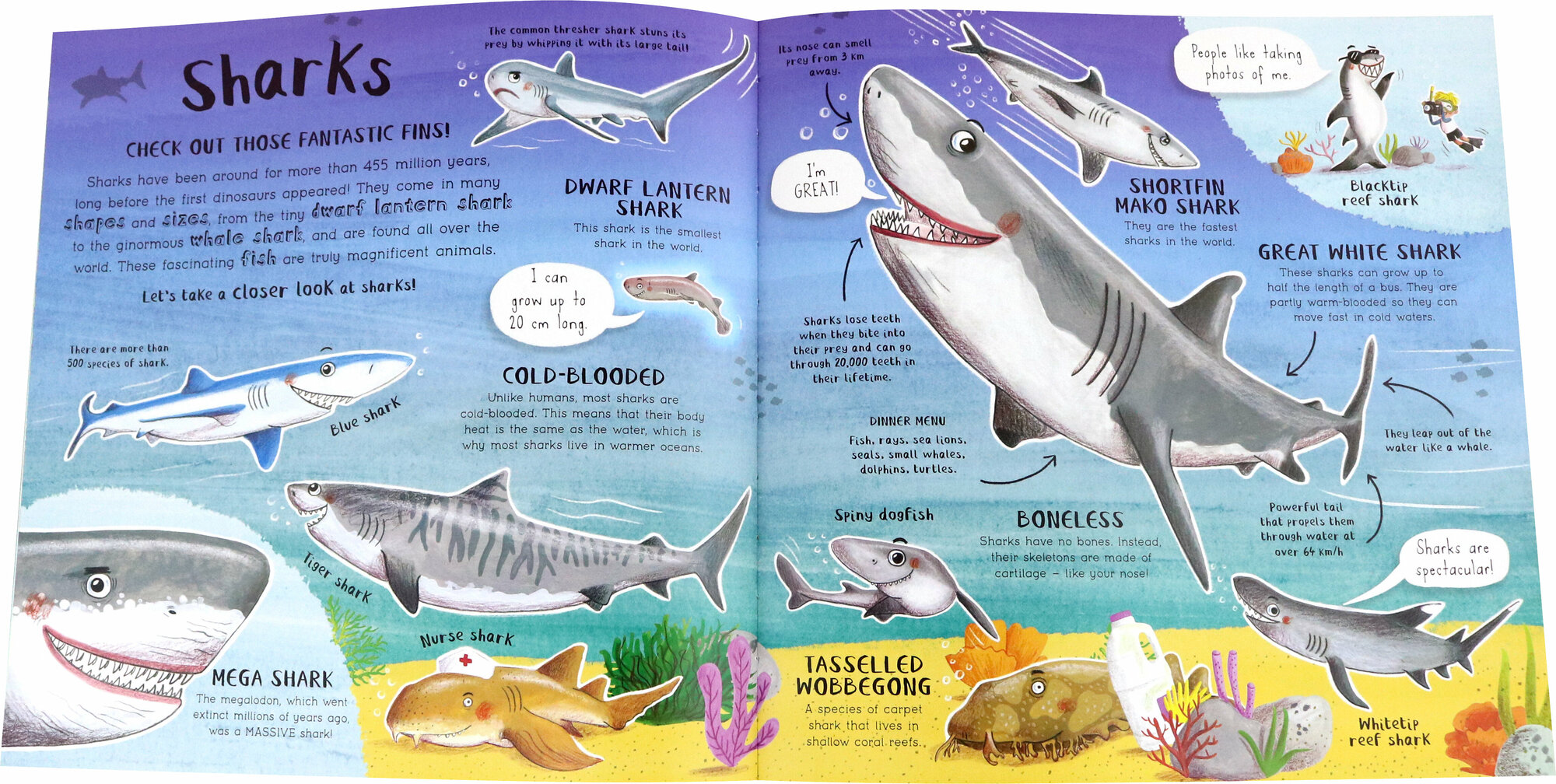 Did you know lobsters keep their teeth in their tummies? Or that you can find rivers and lakes beneath the ocean? And did you know that sea stars have no brain or blood? Explore the wonders of our underwater worlds on every page, from coral reefs, sharks and the deep to shipwrecks, weird fish and frozen seas, there's so much to discover!