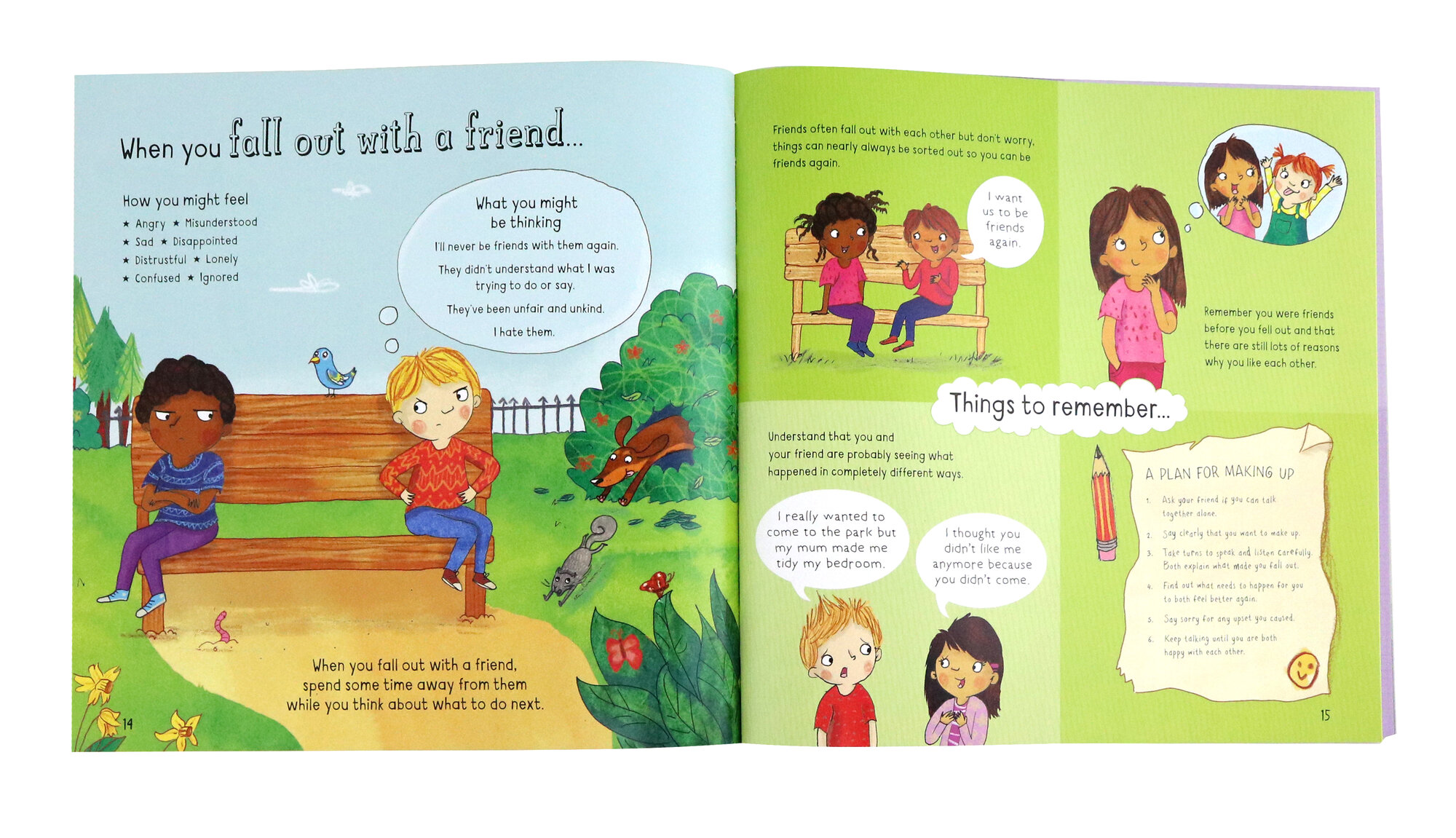 Each page takes the child step-by-step through different worry scenarios, such as falling out with a friend, getting in trouble at school, or feeling like no one is listening. It talks about how they might feel, what they might think, and what could help them to ease the anxiety.
