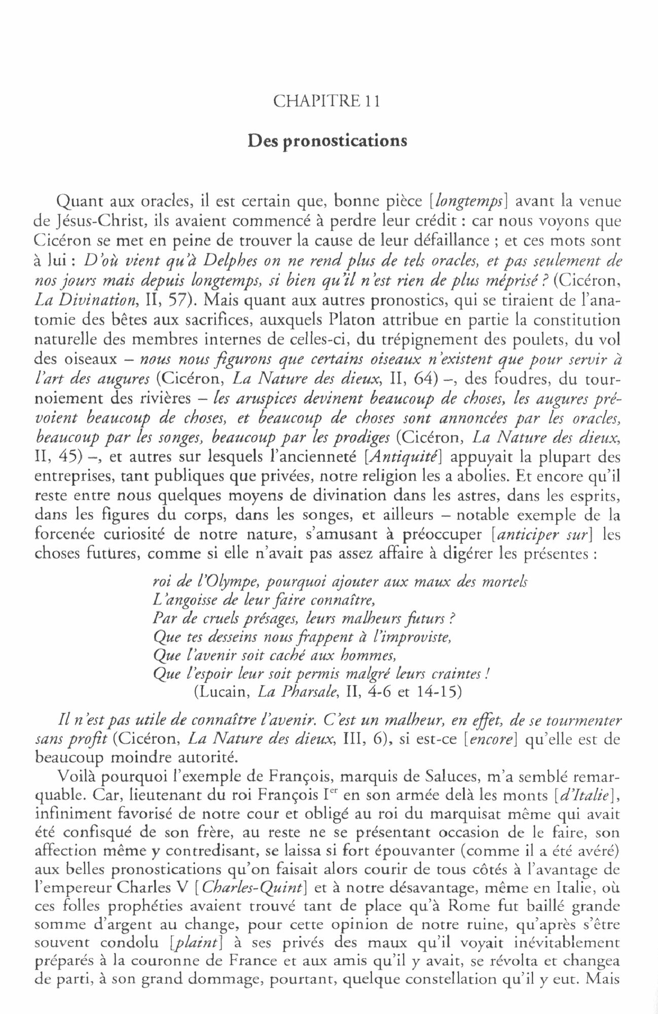 Je veux qu’on m’y voie en ma facon simple, naturelle et ordinaire, sans contention [effort] ni artifice : car c’est moi que je peins. Mes defauts s’y liront au vif, et ma forme naive [naturelle], autant que la reverence publique me l’a permis. Que j’eusse ete entre ces nations qu’on dit vivre encore sous la douce liberte des premieres lois de nature, je t’assure que je m’y fusse tres volontiers peint tout entier et tout nu. Ainsi, lecteur, je suis moi-meme la matiere de mon livre : ce n’est pas raison que tu emploies ton loisir en un sujet si frivole et vain. Adieu donc. »