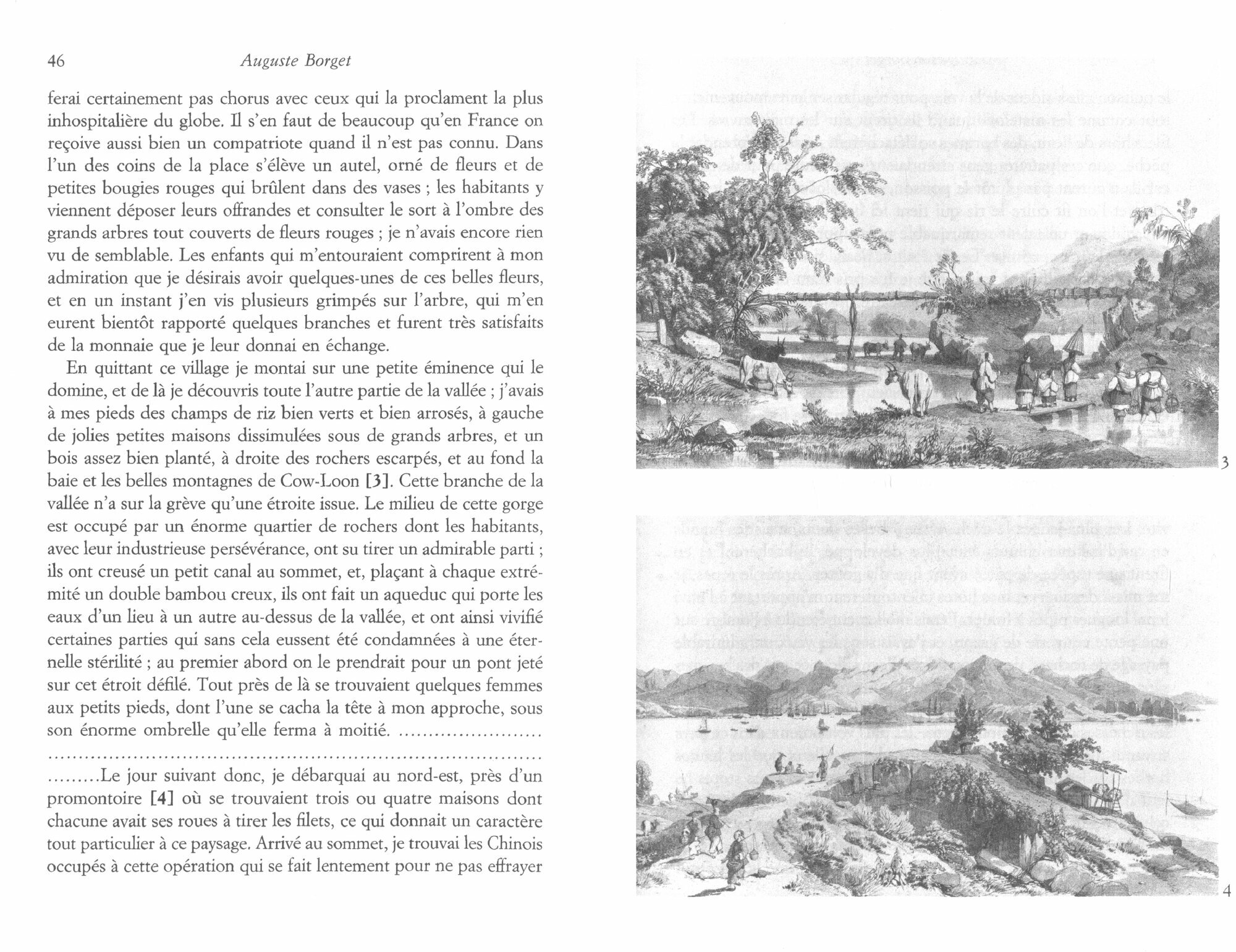 Apres New-York et ses environs, il traverse l'Amerique du Sud, puis le Pacifique, et reside un an sur les cotes de Chine, a un epoque ou bien peu d'Europeens y ont penetre. AHong-Kong, Canton ou Macao, il dessine en permanence et observe le spectacle grouillant de la rue. A son retour, en 1842, il publie un superbe album de 32 dessins lithographies, La Chine et les Chinois, accompagne d'un texte decrivant meticuleusement les m?urs et la vie quotidienne des Chinois.