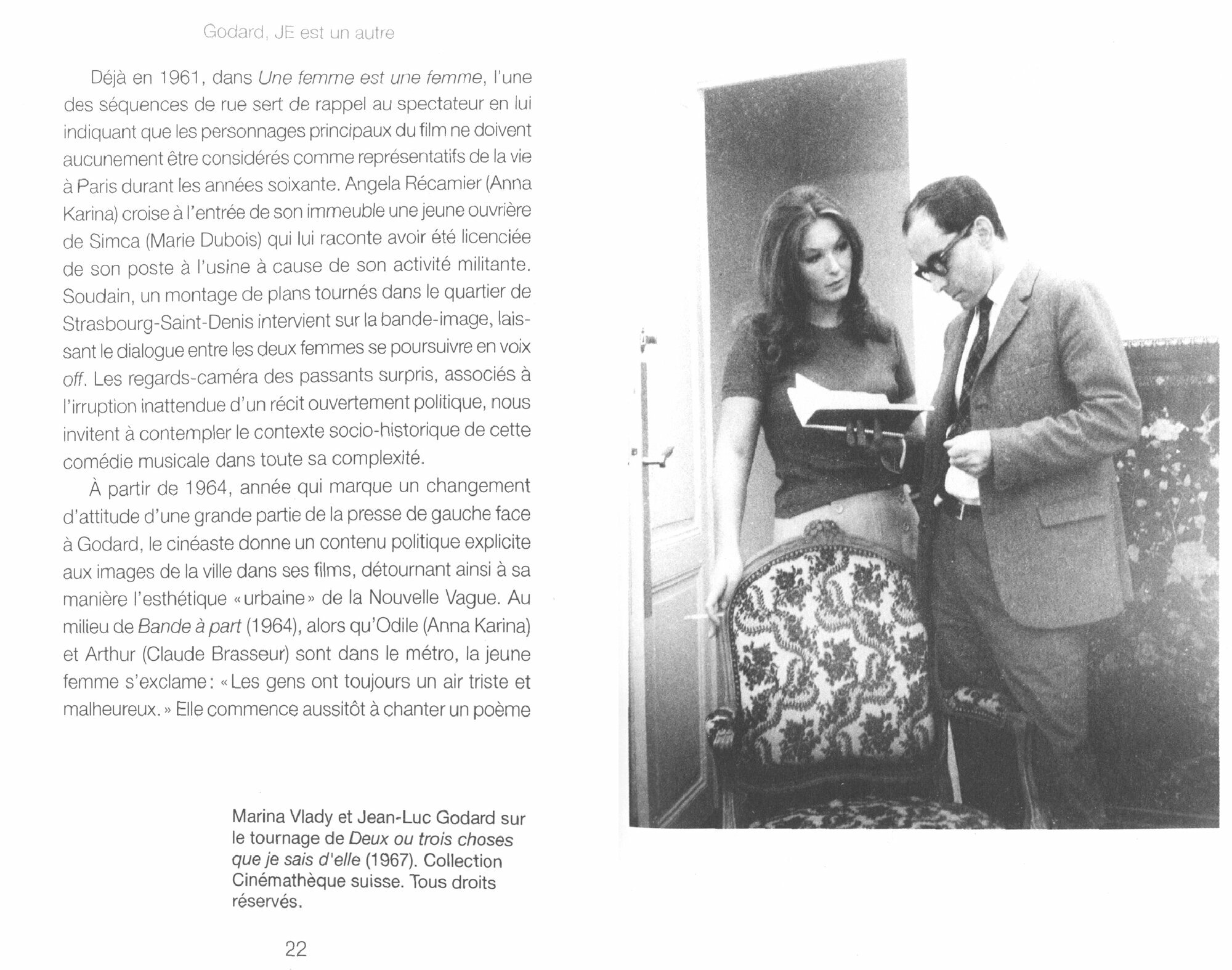 Godard. JE est un autre ne propose pas une biographie guidee par l’ambition d’une precision historique, mais un «conte de faits» qui s’enrichit de rapprochements aleatoires, en se reappropriant cet art de la digression si cher au cineaste. Il se donne comme mission d’eclairer la perseverance d’un artiste-philosophe qui, au-dela de toute esperance, tend la main au spectateur, son frere, sa soeur, ses semblables. Le lecteur est invite a un jeu d’associations libres entre la vie de l’homme et l’oeuvre du realisateur, structure par une thematique omnipresente dans les films ici traites: de la vision equivoque de l’alterite feminine a l’engagement dans la lutte politique en soutien aux domines de ce monde, en passant par la quete spirituelle et les questionnements relatifs a la memoire historique, le cinema de Godard vise au depassement de Soi par l’ouverture a l’Autre.