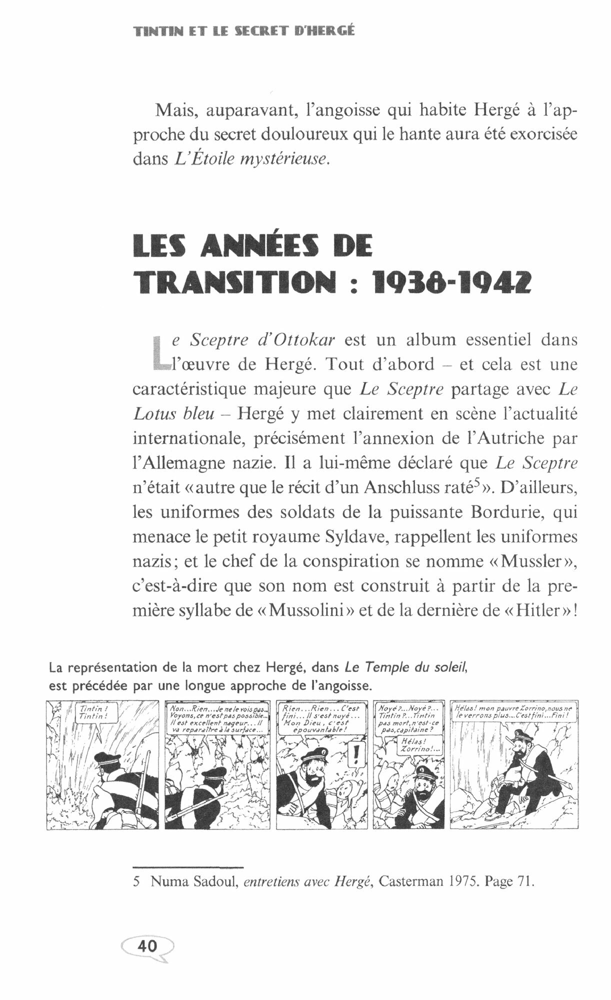 Pourquoi les Dupond et Dupont, qui, de l'aveu meme de Herge, representent son pere et son oncle, et que l’on prend pour des jumeaux, ne portent-ils pas le meme nom ? Pourquoi Herge associe-t-il avec tant d'insistance chaque apparition de la Castafiore, son unique heroine, avec l'« Air des bijoux » du Faust de Gounod ?