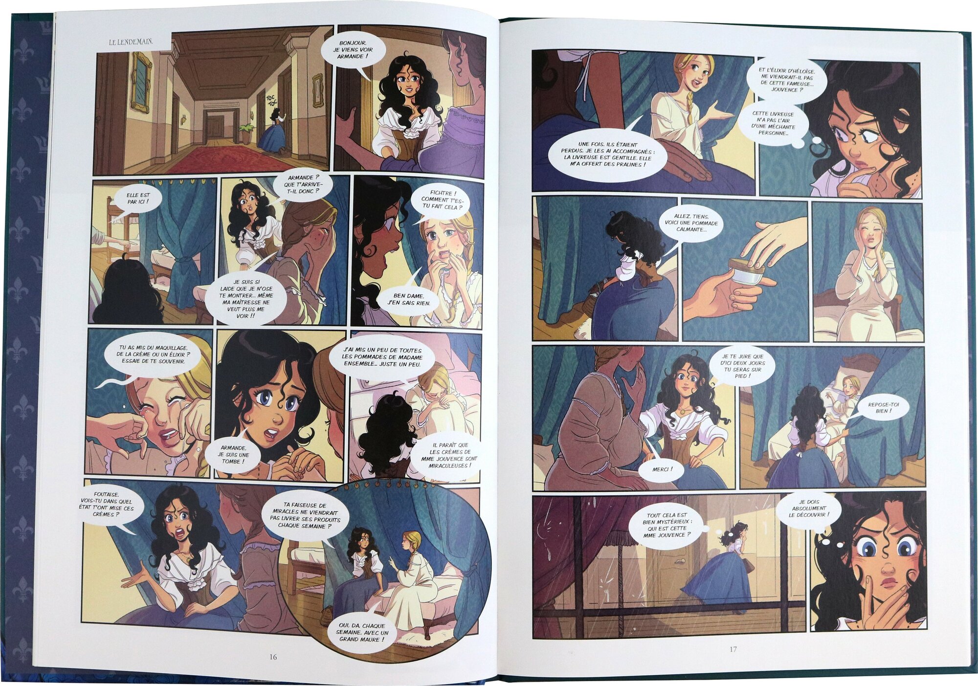 A la cour de Versailles, les dames s’arrachent les remedes d’une certaine Madame Jouvence. Mais Heloise de Montviviers, une amie de Madame de Montespa, echappe de peu a la mort, apres avoir utilise un de ces produits miracles. Qui donc se cache derriere la « dame aux elicir » ? Pendant que Cecile enquete, son amie Pauline, elle, tente de mettre de l’ordre dans ses sentiments pour le beau Silvere. Plus que jamais complices, les deux demoiselles d’honneur vont tenter de demeler de sombres intrigues.