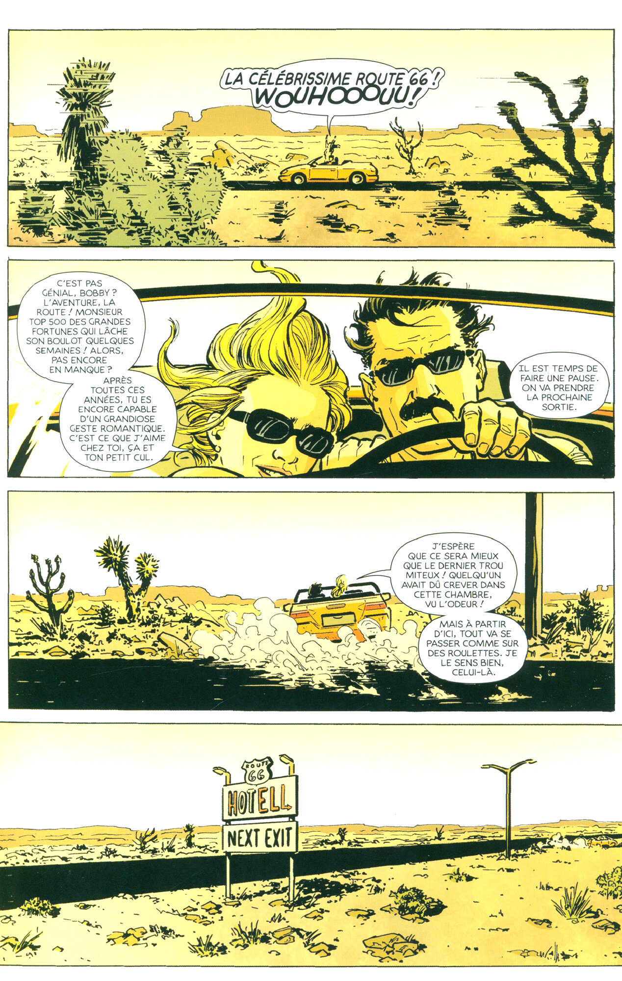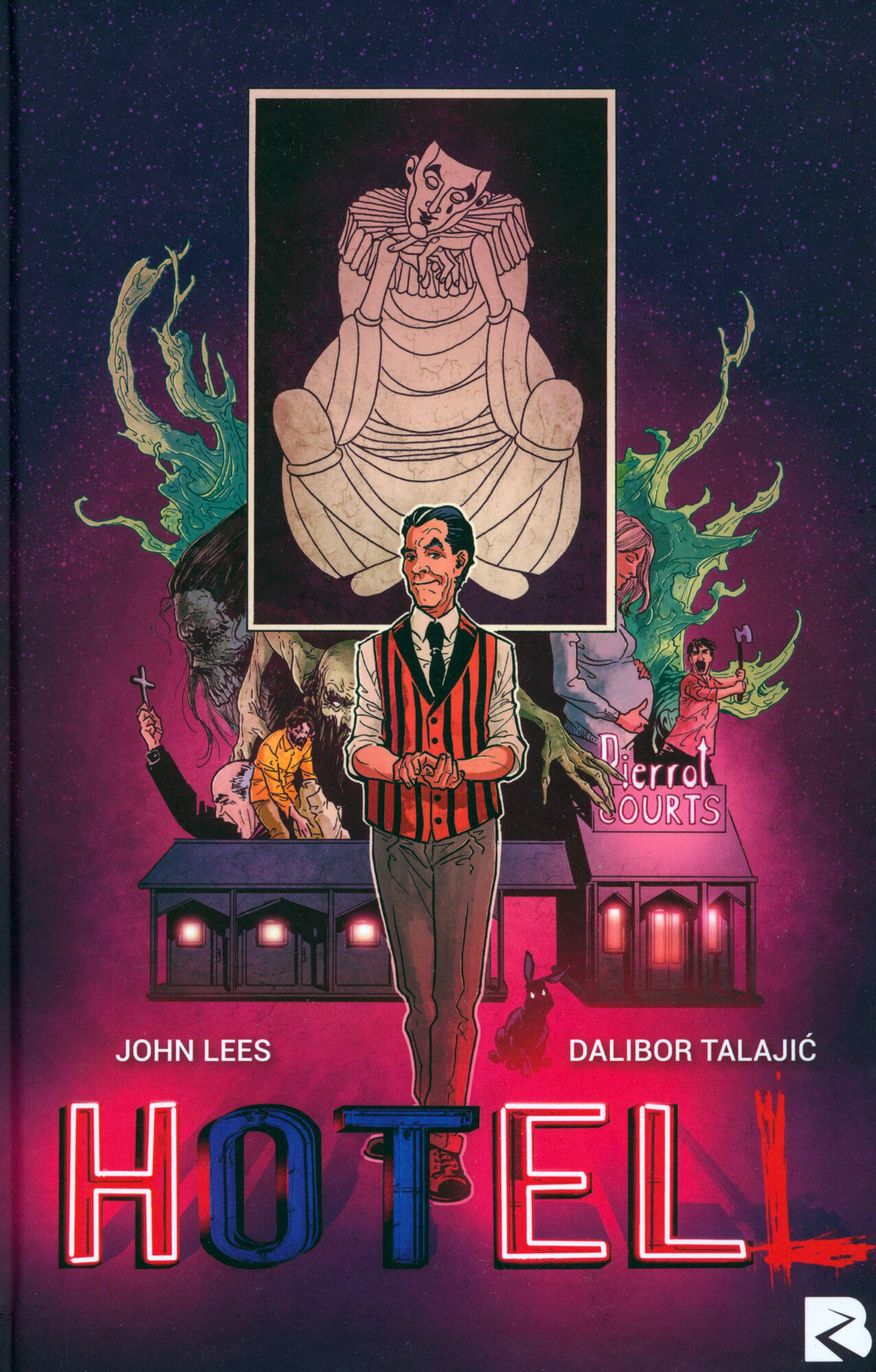 L’hotel Pierrot Courts. Vous ne le trouverez sur aucune carte, mais s'il vous arrive de conduire sur la Route 66 tard dans la nuit et que vous avez desesperement besoin d’un refuge ou de vous cacher, vous apercevrez peut-etre un panneau abime en bordure de route. C’est un endroit ou beaucoup s'enregistrent au comptoir mais d’ou bien peu repartent. Et vu les horreurs qui vous attendent a l'interieur, vous auriez peut-etre prefere continuer a rouler...